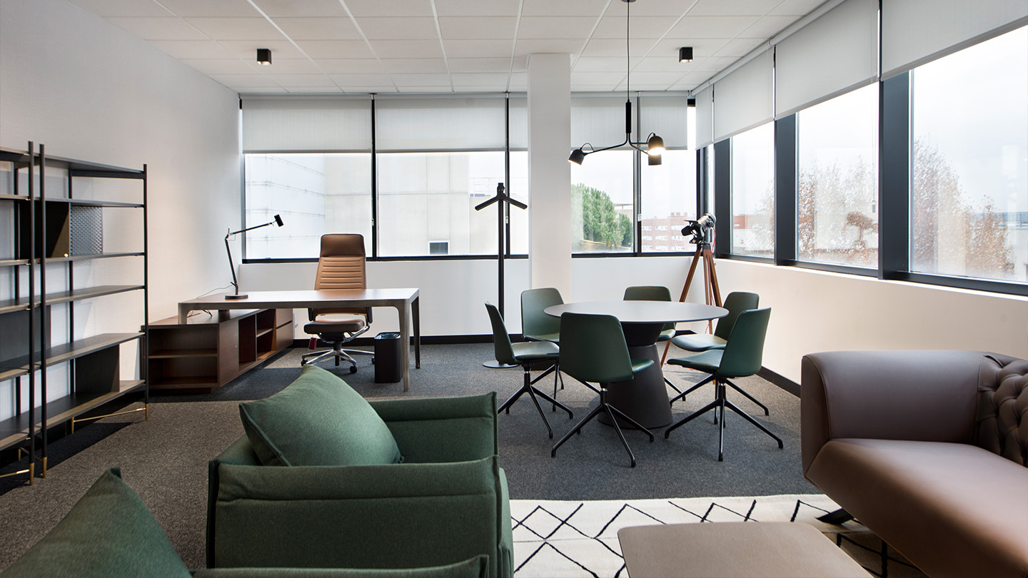Elegidos por su diseño, versatilidad y atemporalidad, varios programas de Actiu, como las sillas Urban Plus 30 o la mesa Trama, equipan la zona de trabajo polivalente. Para los puestos operativos y las salas de reuniones se eligen las sillas Stay y las mesas Vital Plus, y en la zona de dirección, la Vital Plus Spine añade un toque diferenciador.