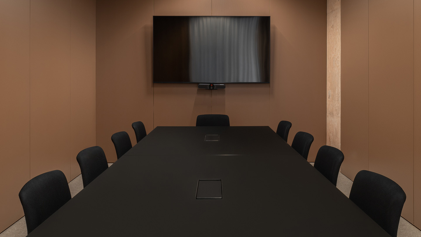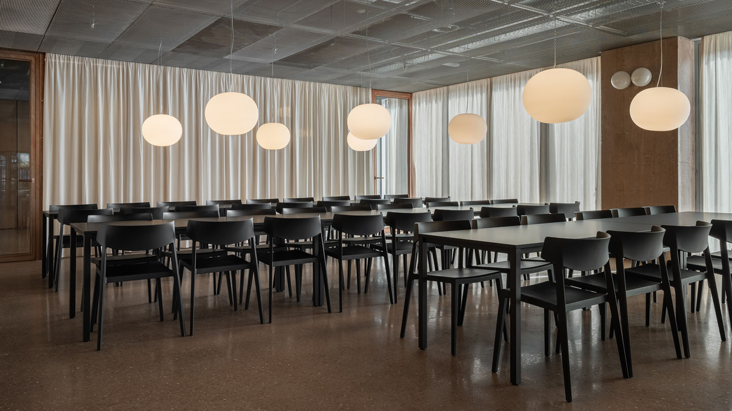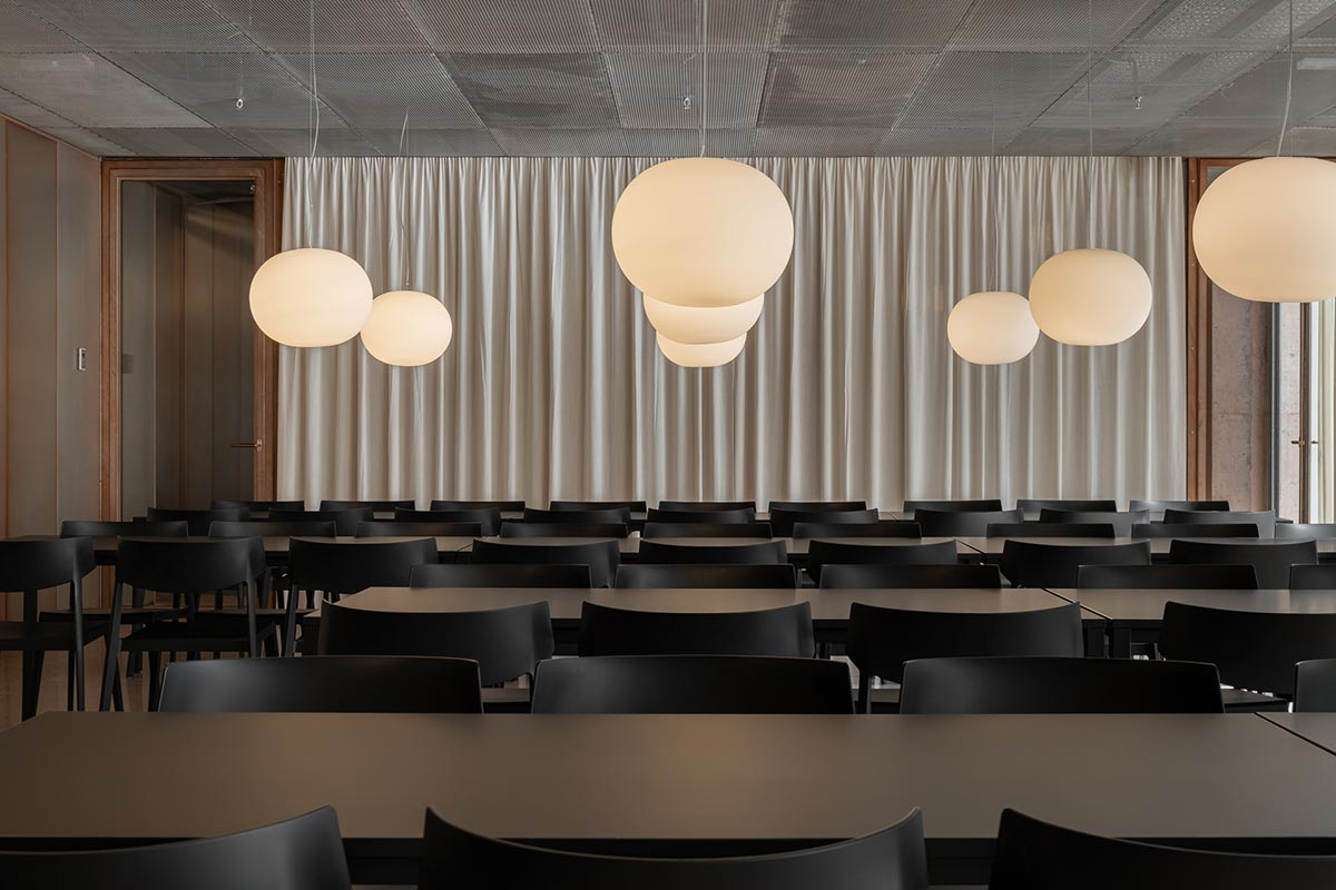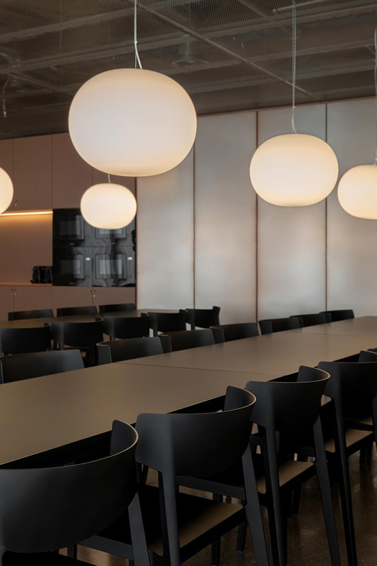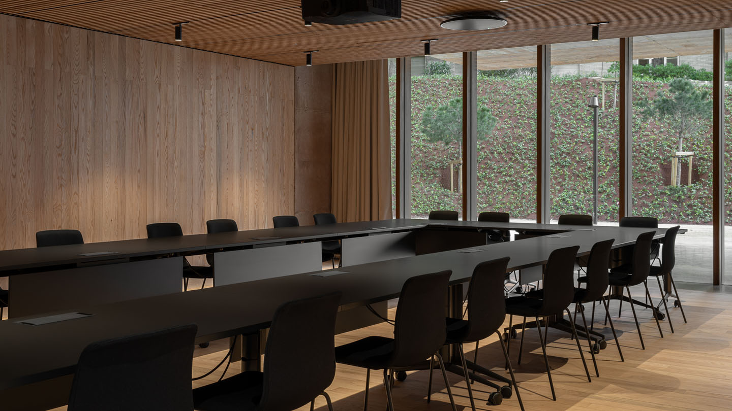 Incluso las mesas operativas Prisma, que no existían en acabado negro, incorporan una nueva versión en este color que se añade al catálogo. Para permitir diferentes usos y configuraciones, en la sala de reunión más grande se ha elegido la mesa polivalente con ruedas del modelo Trama, electrificada para permitir el uso de ordenadores durante las reuniones. Las sillas Stay, Wing y Noom, y las mesas Tabula, son otros de los programas utilizados.
