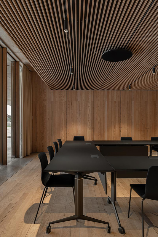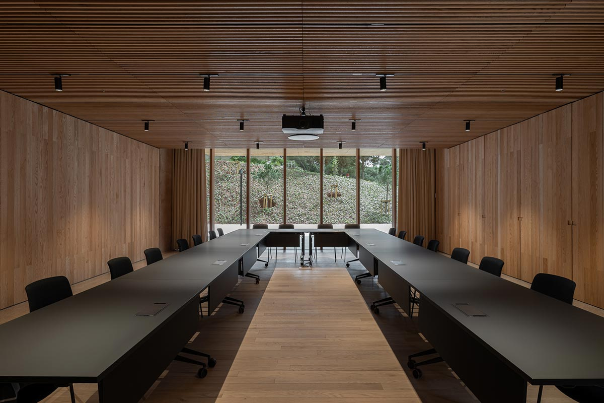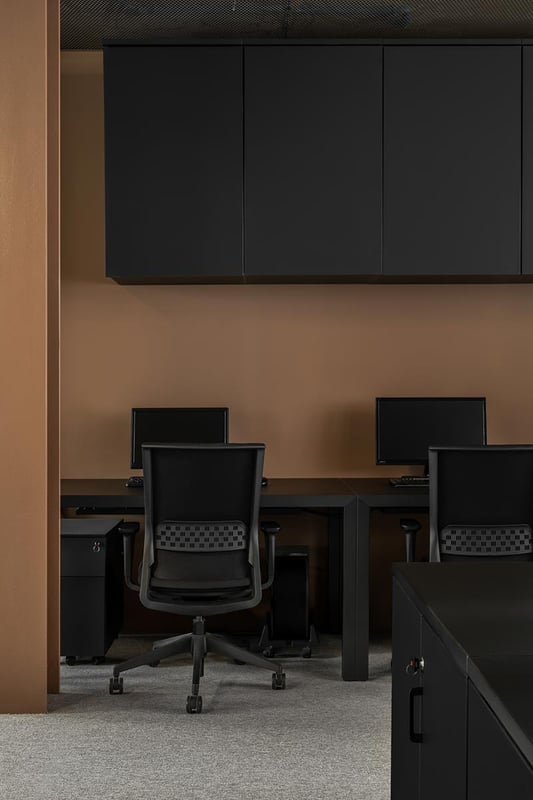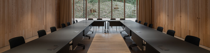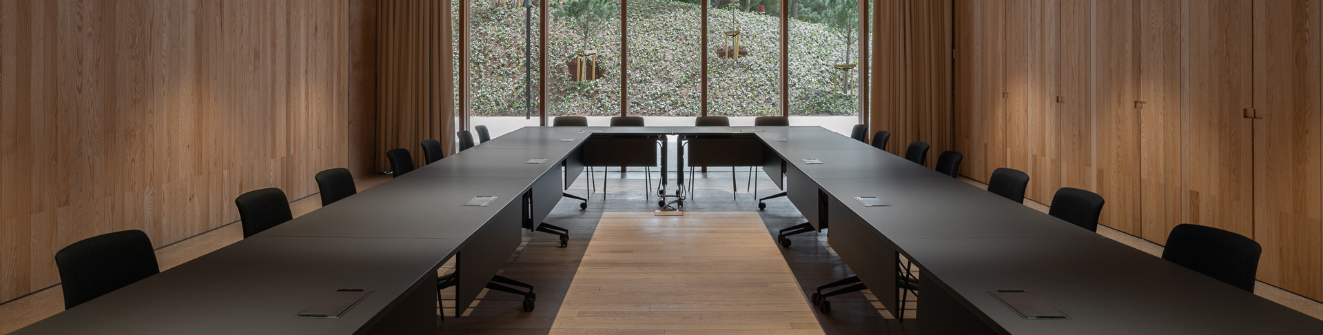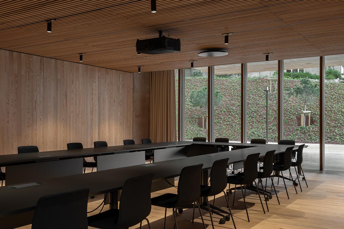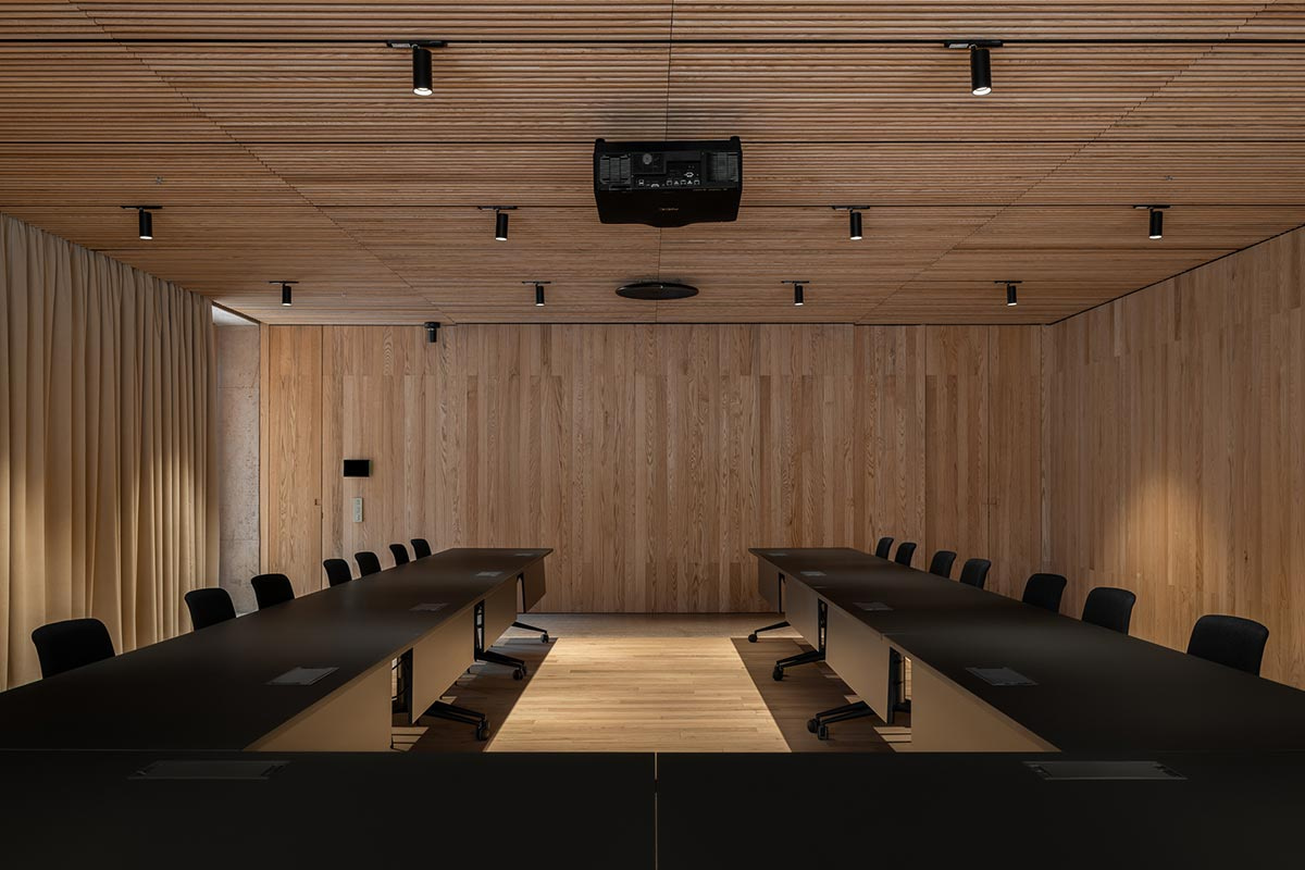 Incluso las mesas operativas Prisma, que no existían en acabado negro, incorporan una nueva versión en este color que se añade al catálogo. Para permitir diferentes usos y configuraciones, en la sala de reunión más grande se ha elegido la mesa polivalente con ruedas del modelo Trama, electrificada para permitir el uso de ordenadores durante las reuniones. Las sillas Stay, Wing y Noom, y las mesas Tabula, son otros de los programas utilizados.