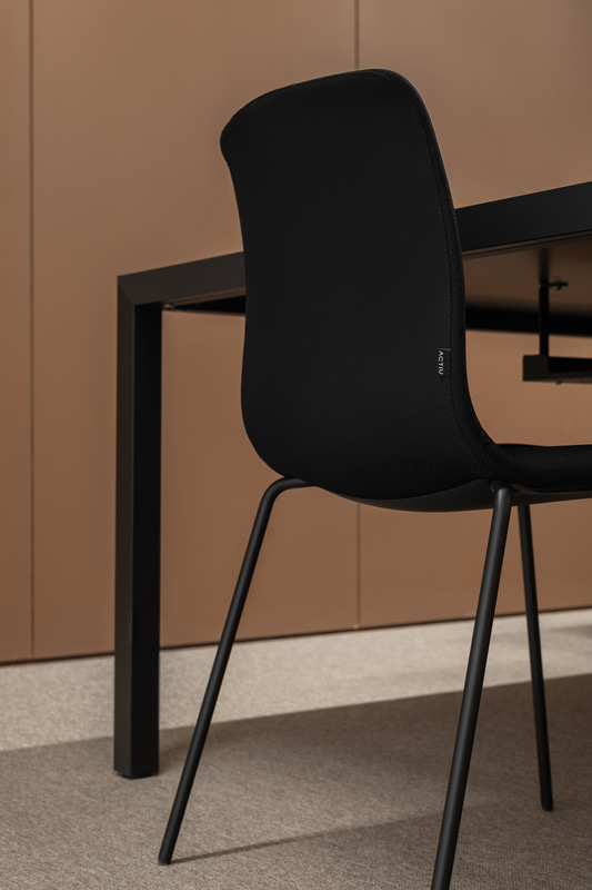 En un característico color negro, el mobiliario cumple con todos los requisitos técnicos de ergonomía y funcionalidad necesario para equipar un lugar de trabajo público y dispone de la máxima certificación