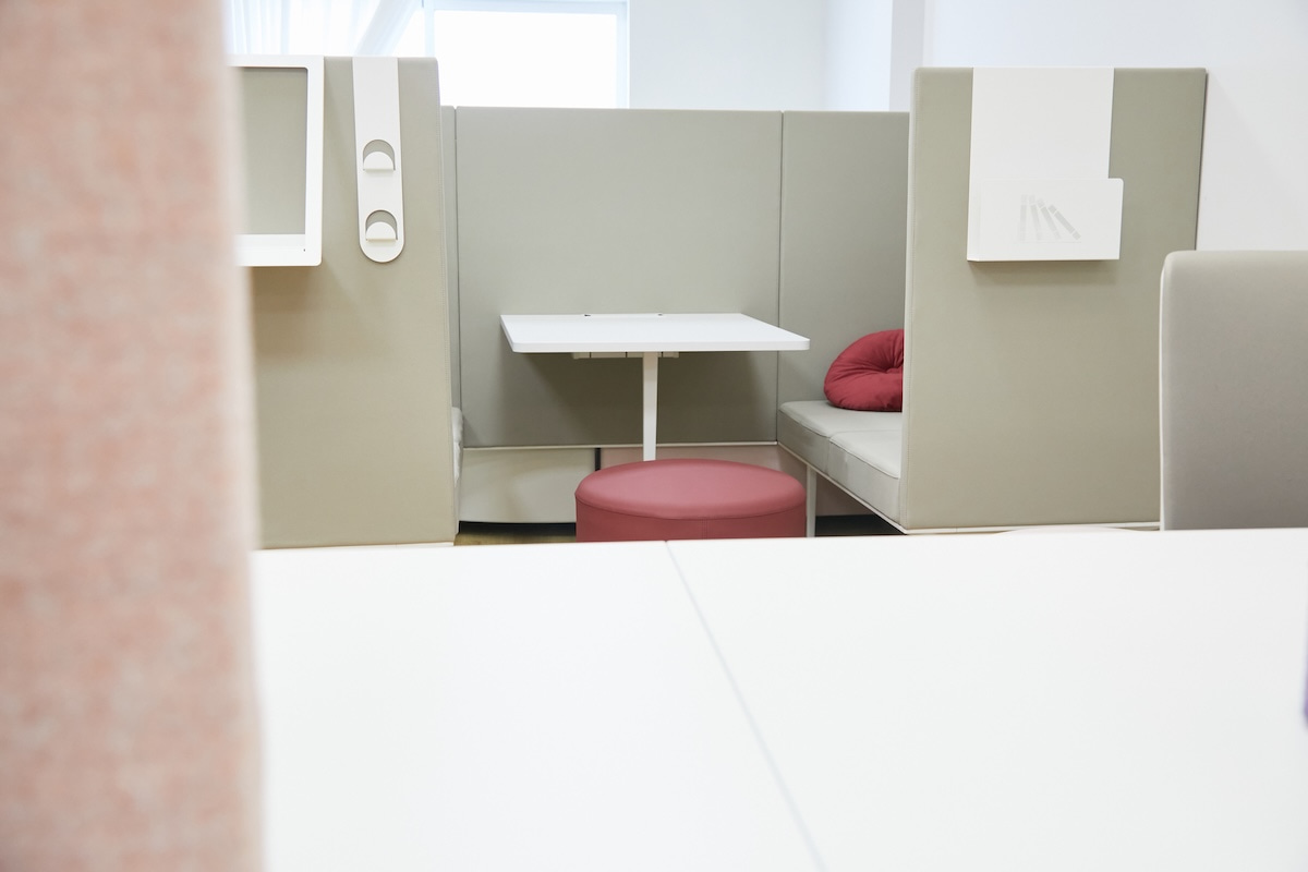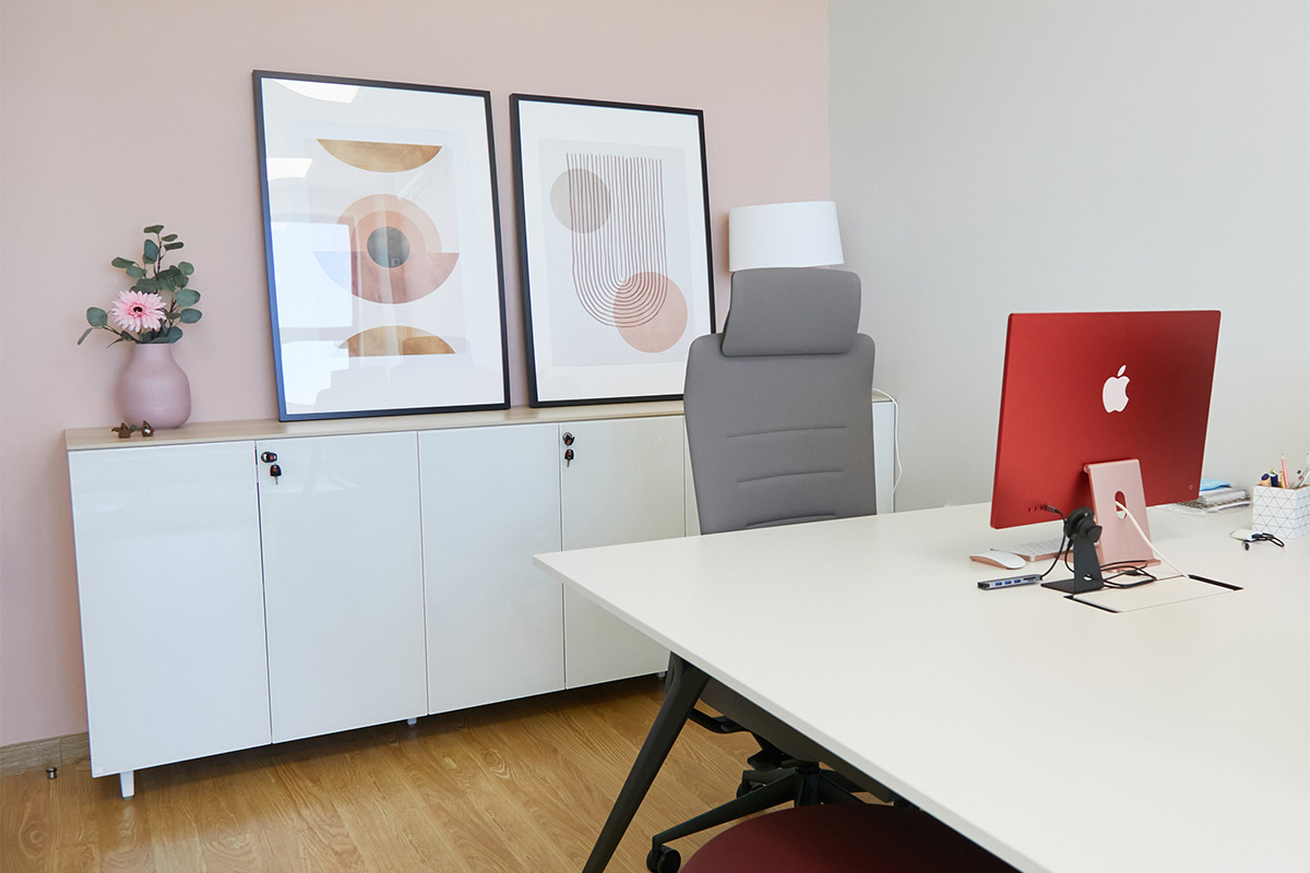 Muy versátiles, los programas elegidos combinan soluciones funcionales y operativas, como las mesas Prisma y sillas TNK 500 y Trim de los benchs operativos; o la mesa Arkitek, que aporta un toque elegante y distintivo al despacho de Vikika Costa y su socio, Javier Menéndez; con módulos y pufs Bend , sillones Badminton y módulos Longo Pod, más casuales y relajados y que promueven el encuentro y la colaboración. En el office-comedor se ha querido generar un espacio muy dinámico, a través de dos zonas diferenciadas, donde tabureres Noom conviven con una mesa central Cool E100 donde comer en grupo y otra Tabula para disfrutar de una mayor privacidad.