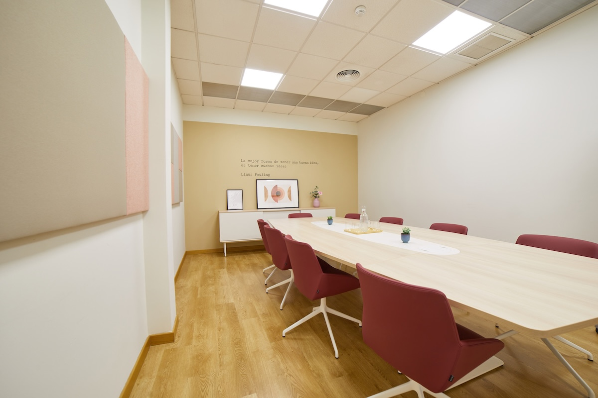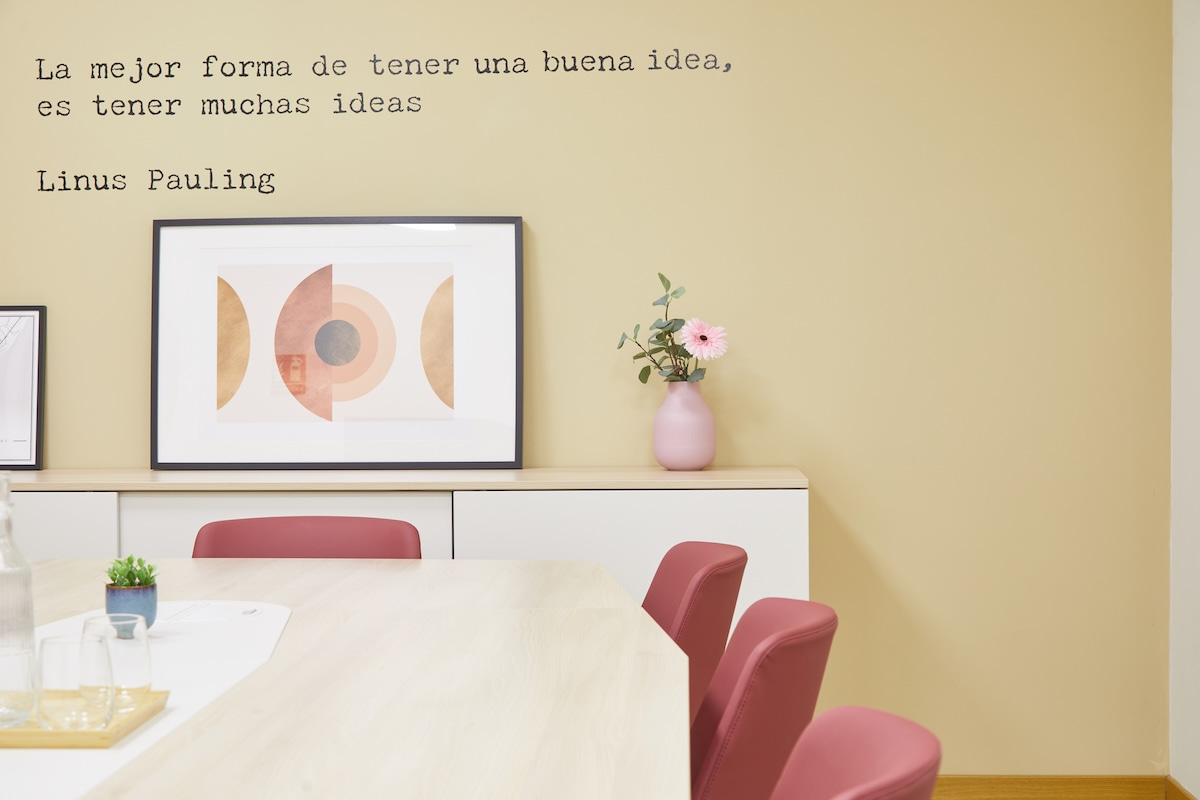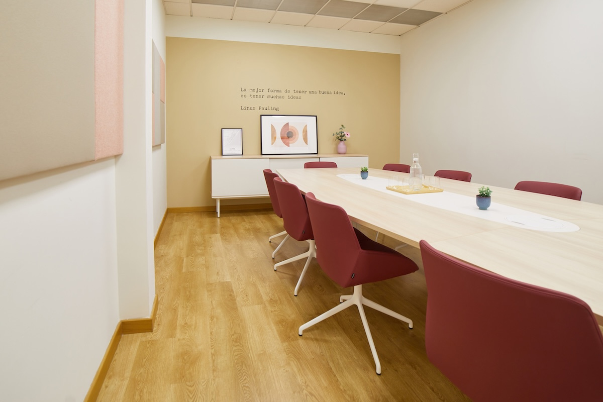 Organizadas en distintas zonas, más o menos cerradas a través de planos acristalados, cortinas o los convencionales tabiques, las oficinas donde el equipo de Vikika Team y Entrena Virtual trabaja mientras cuida de su salud física y mental se equipa con un mobiliario muy variado y que da respuesta a las distintas necesidades.