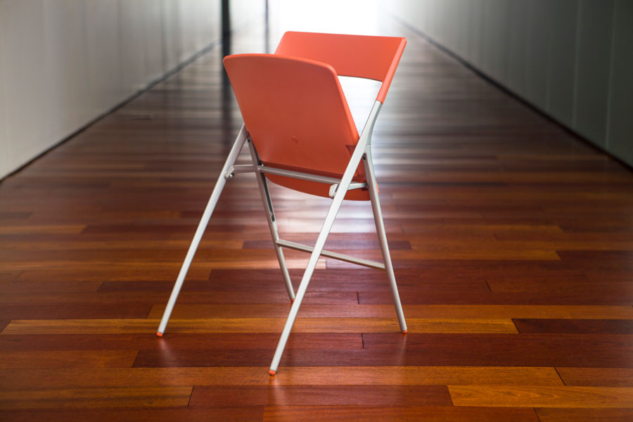 Plek reinventa el concepto clásico de sillas plegables. Se caracteriza por un estilo muy personal de líneas esbeltas y continuas. Su diseño ligero, combinado con materiales nobles como el aluminio inyectado para su estructura, la convierten en una pieza única en su gama. Se puede complementar con carros que permiten almacenar y transportar fácilmente las sillas y las mesas. La silla Plek ha sido galardonada con el Premio Red Dot al diseño de producto 2008 y seleccionada por los Premios Delta 2009.