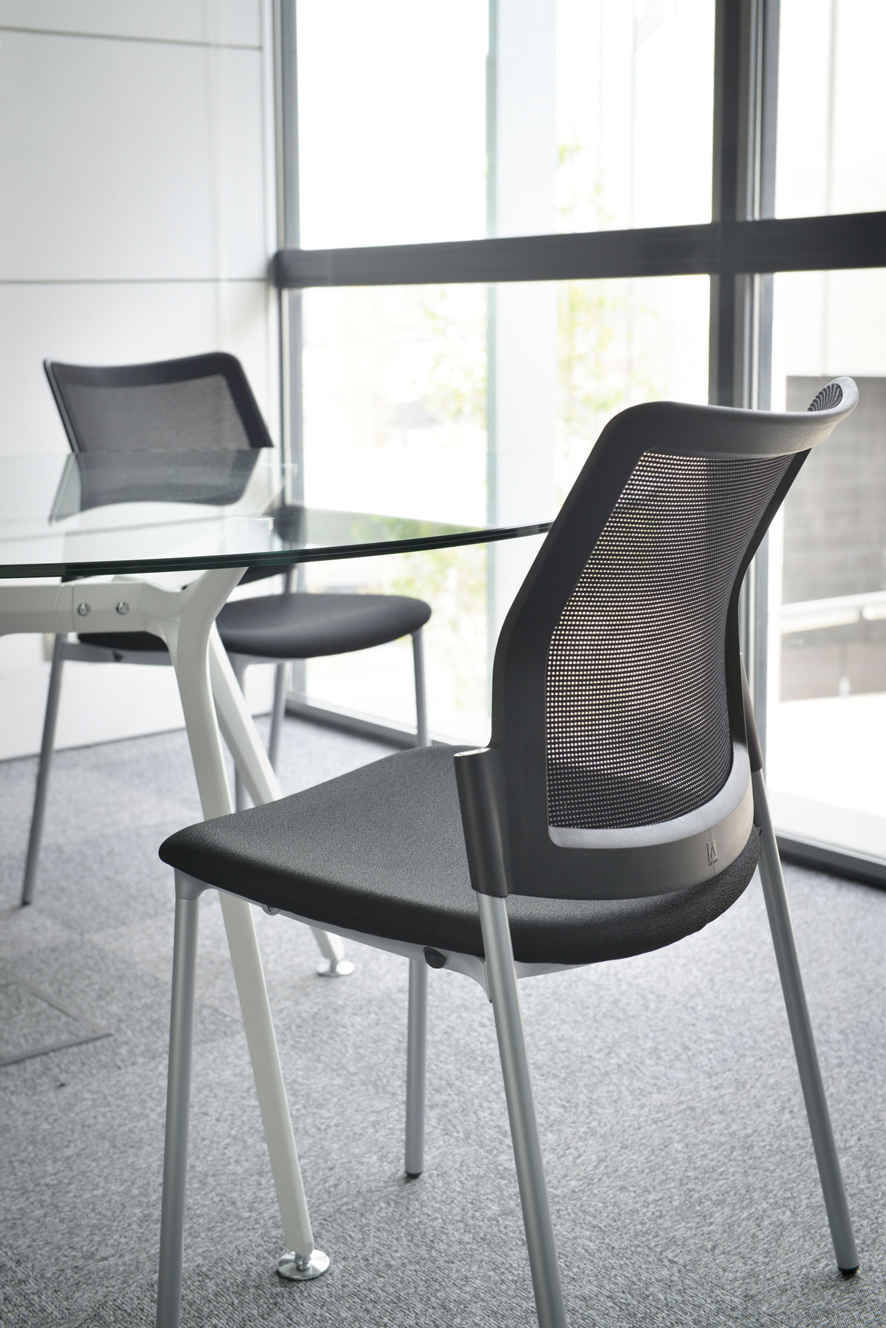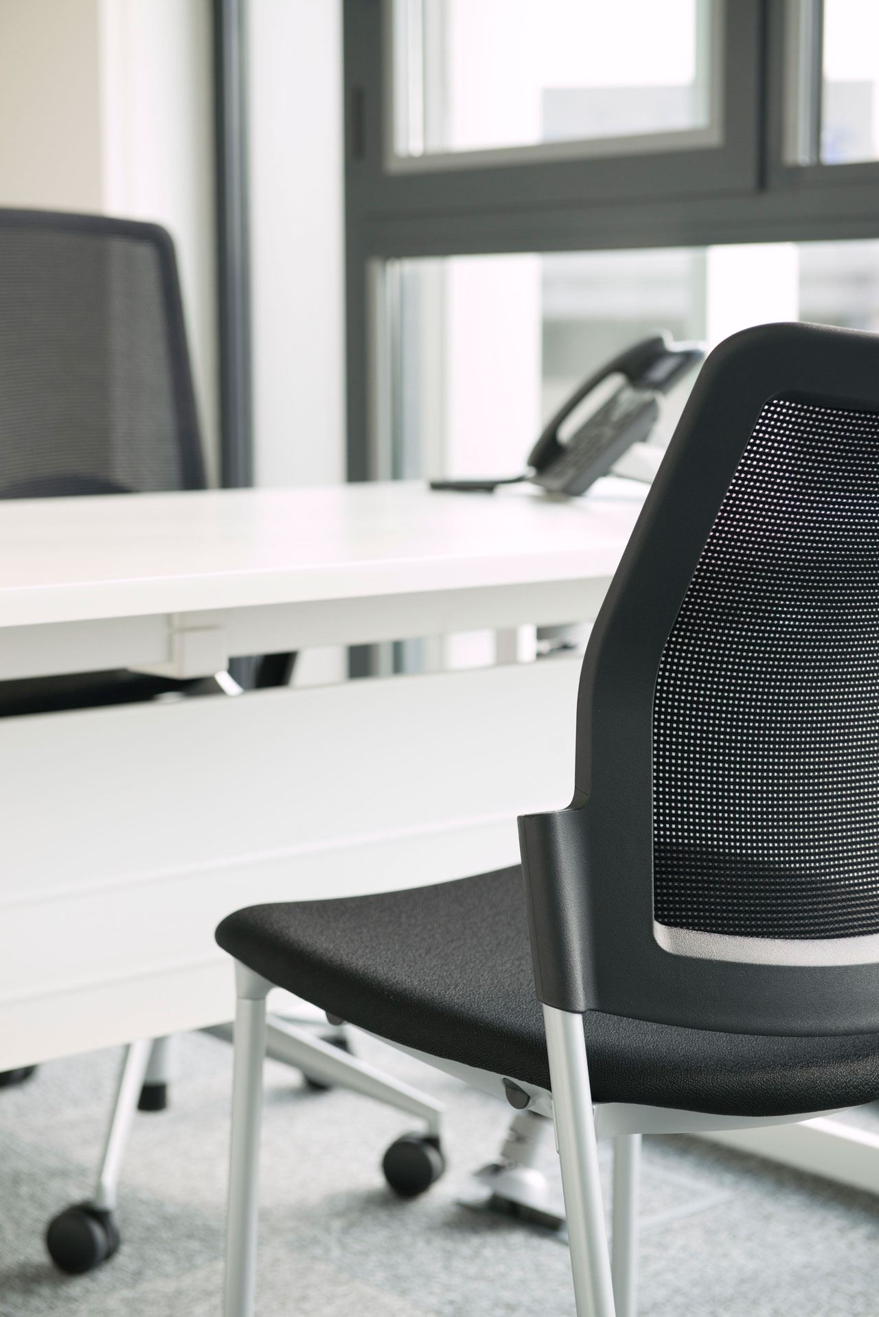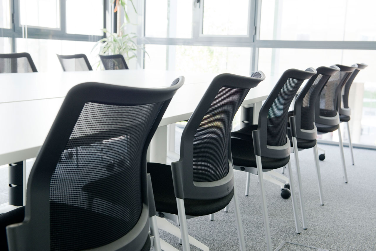 Para las reuniones se han diseñado varias salas con planteamientos diferentes para que puedan cubrir las diferentes necesidades planteadas. En una de ellas se ha instalado la mesa Vital Plus y la silla Urban Plus con ruedas y respaldo de malla elástica que envuelve la espalda del usuario aportándole una gran comodidad.