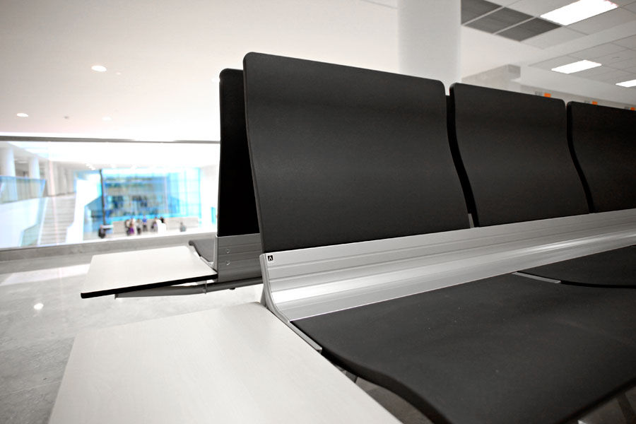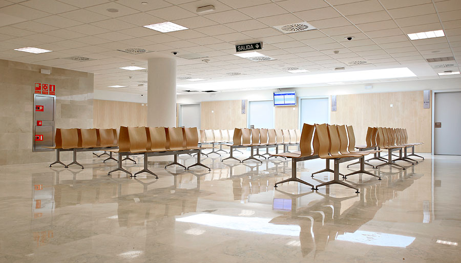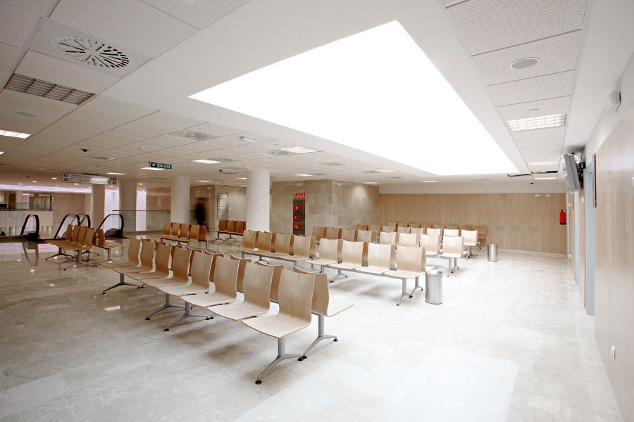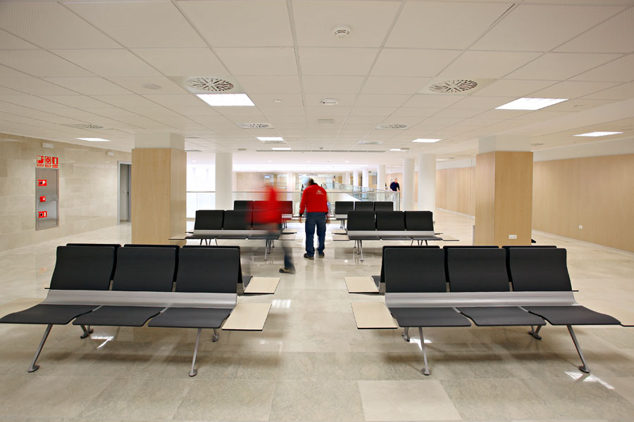 La construcción del nuevo Hospital La Fe parte de un único edificio formado por cuatro bloques conectados eficazmente en su interior, que se corresponden con el Área Asistencial, Investigación, Docencia e Instalaciones. Los amplios espacios de espera y tránsito se han amueblado con la bancada Íkara, de madera lacada en color haya, cuyo diseño la hace óptima para un uso intensivo.