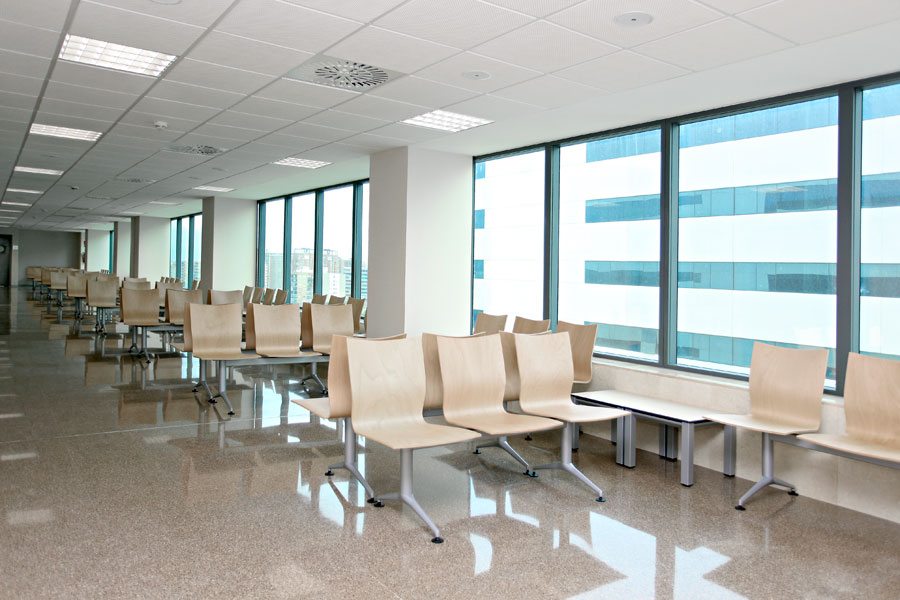 Para las zonas comunes que utilizan los trabajadores del centro hospitalario y las salas de reuniones se ha seleccionado, de nuevo, el programa de mesas Vital Plus, ya que ofrece la posibilidad de realizar múltiples composiciones. La silla Uma, con su estilo discreto y elegante, ofrece un variado surtido de modelos adaptables a las diversas necesidades de equipamiento.