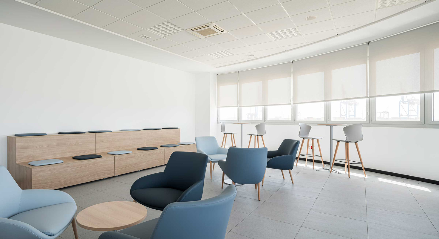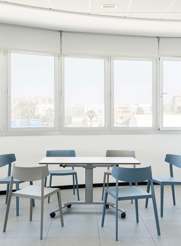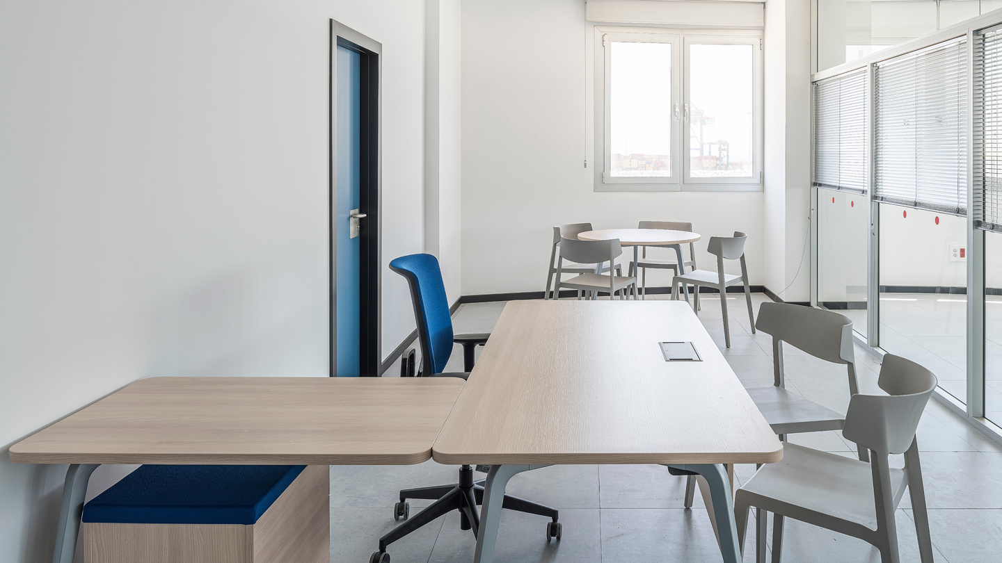 En la zona más 'privada', se ha optado por programas operativos y ergonómicos, como las mesas Twist y las sillas TNK Flex de los despachos, y otros que, como las mesas Arkitek y Prisma, o las sillas Noom 50, añaden elegancia y 'elevan' la zona gerencial.