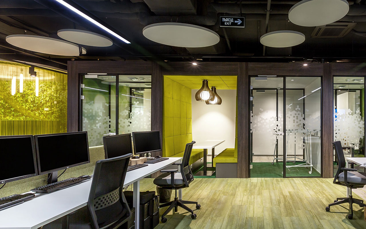 Al igual que los suizos, el estudio ruso ha apostado por un formato ágil de diseño, que optimiza el trabajo, facilita la comunicación y acelera los procesos. “Mucho más allá del diseño, la agilidad hace referencia al enfoque de trabajo cuando los equipos multifuncionales se juntan”, señalan los arquitectos. Para lograrlo, cada una de las seis áreas de la oficina contiene todo lo necesario para un trabajo productivo.