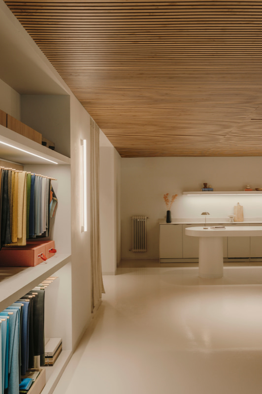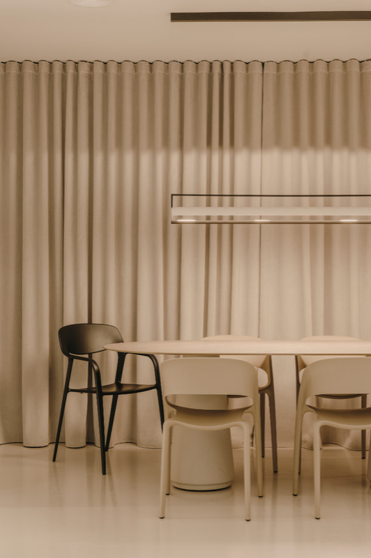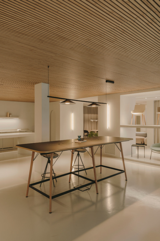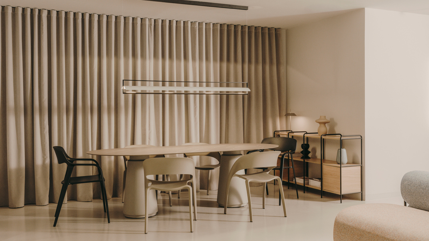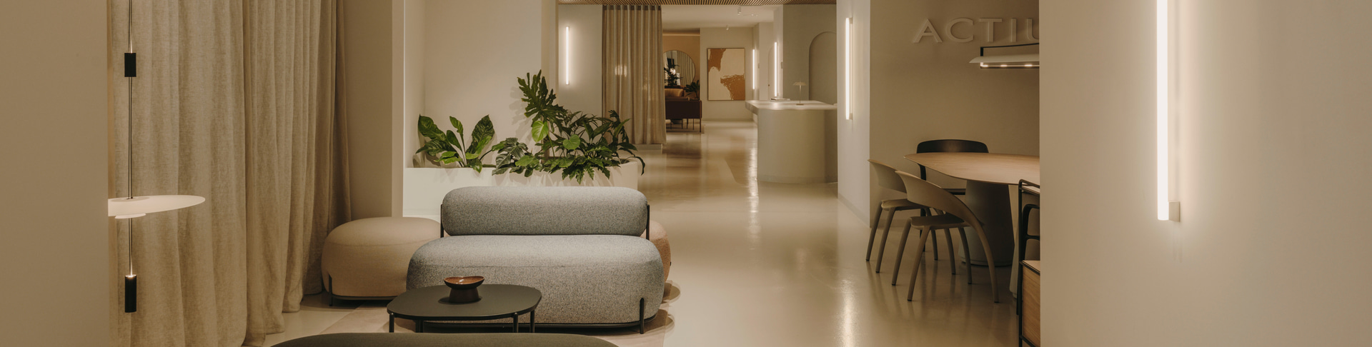 Su arquitectura respira un claro estilo mediterráneo. El proyecto va mucho más allá de mostrar mobiliario de diseño. Plantea un refugio orgánico y flexible pensado para garantizar el bienestar de las personas. Y aquí fluyen las ideas. Es un punto de encuentro ágil concebido para profesionales del sector. El interiorista catalán ha logrado materializar esa visión. Utiliza texturas amables y tonos neutros para generar una atmósfera relajada. La acústica cuidada y el diseño biofílico acompañan la experiencia. Todo suma.