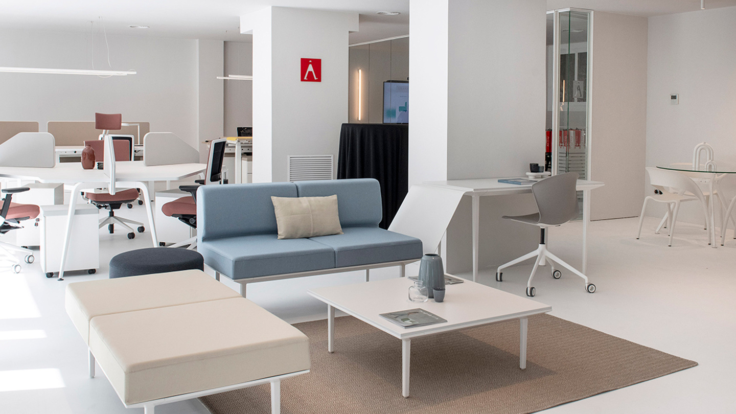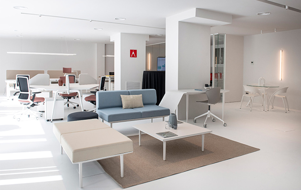 Desde sillones en áreas de descanso hasta mesas de oficina con diversas características para salas de reuniones o despachos, están a disposición de los visitantes del Showroom en Barcelona. Además, todo el mobiliario es adaptable para toda clase de ambientes de socialización que invitan al desarrollo dinámico y flexible del trabajo.