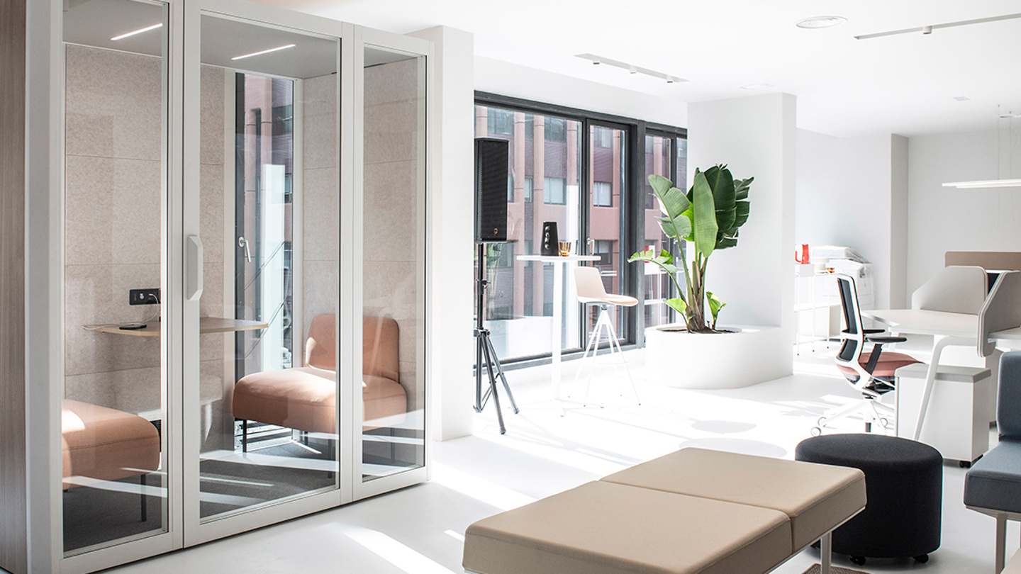 En el Showroom de Actiu en Barcelona se respira tranquilidad y buen ambiente. Los espacios de trabajo están orientados a recibir la máxima luminosidad con el objetivo de llenarnos de optimismo y poder plasmarlo en nuestro trabajo.