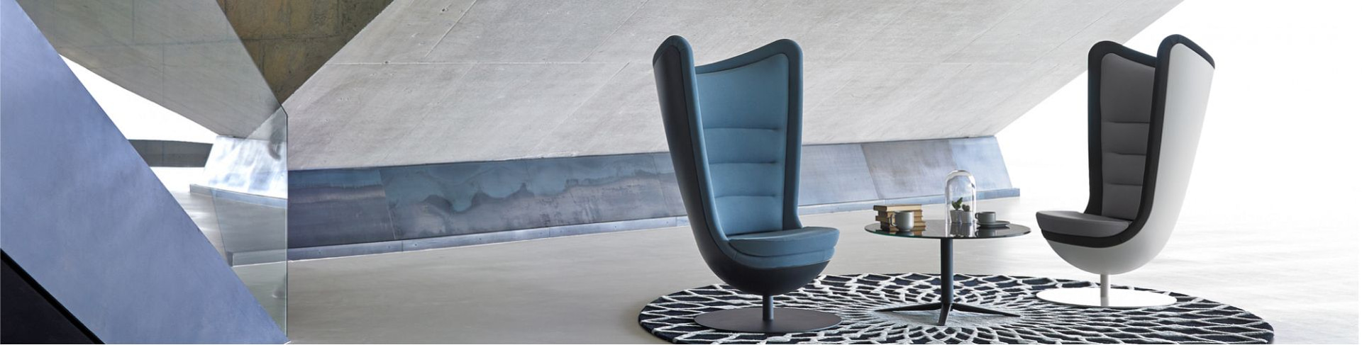 Badminton permite una amplia gama de posibilidades en sus colores, texturas y acabador, permitiendo incluso elegir el acabado de su carcasa exterior en brillo, satinado o mate. Sus dos tipos de base, estrella o peana, permiten el giro de 360º del sillón.