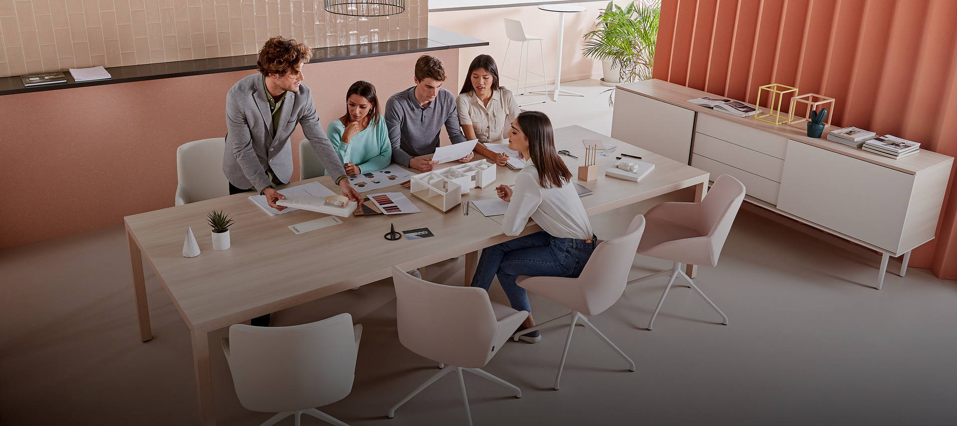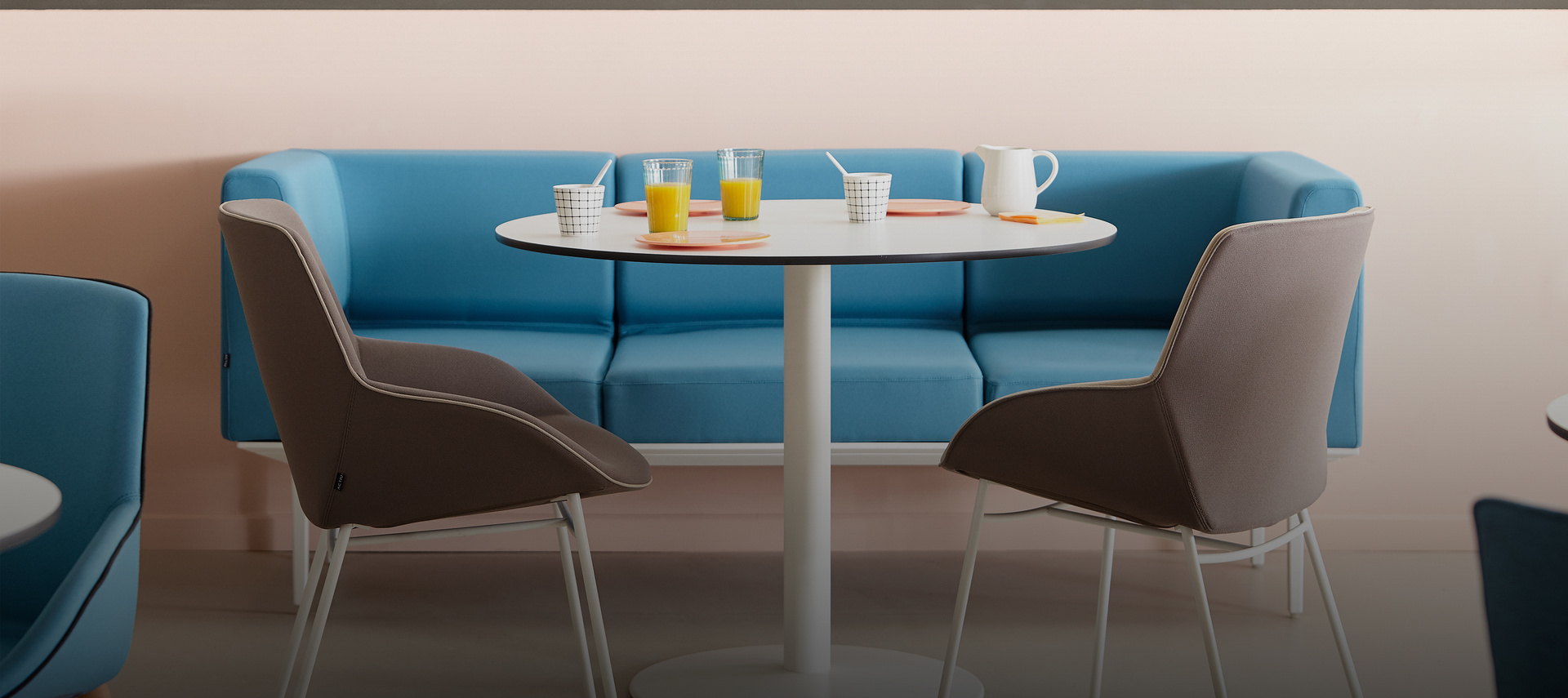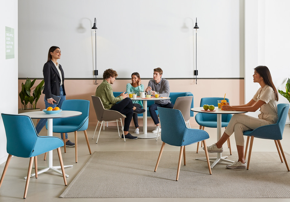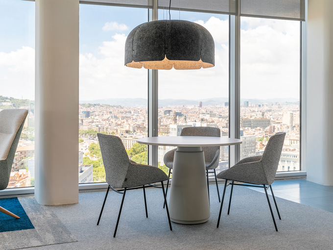 La calidez de sus materiales y la suavidad de su silueta fomentan la comunicación, el descanso y la creatividad.