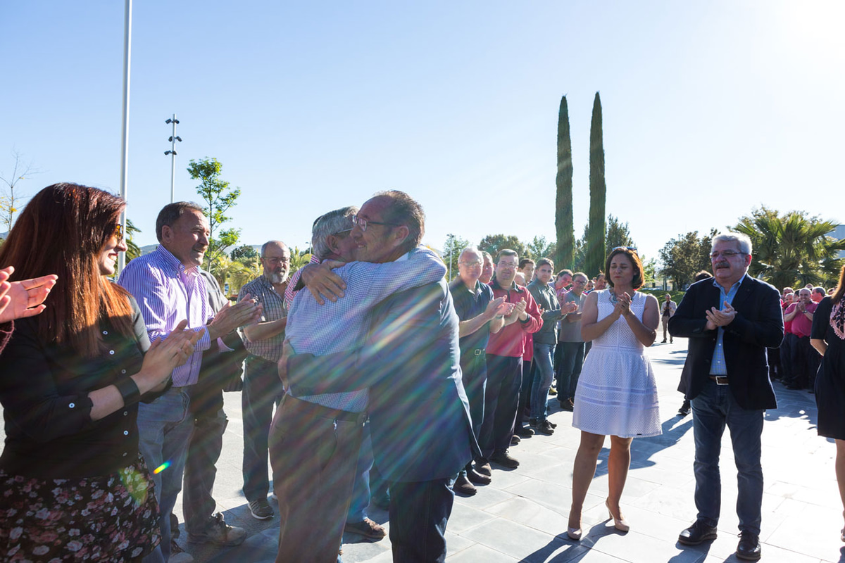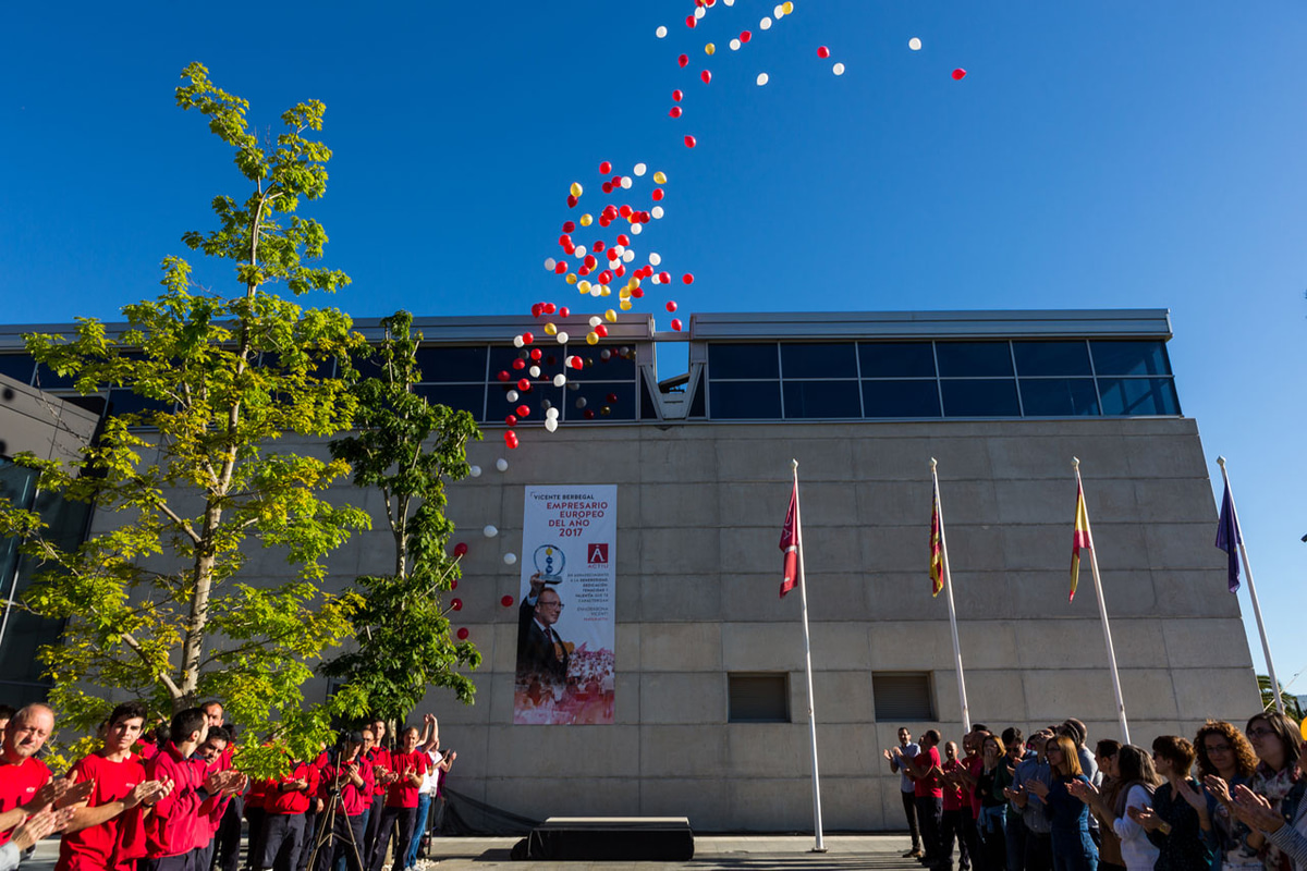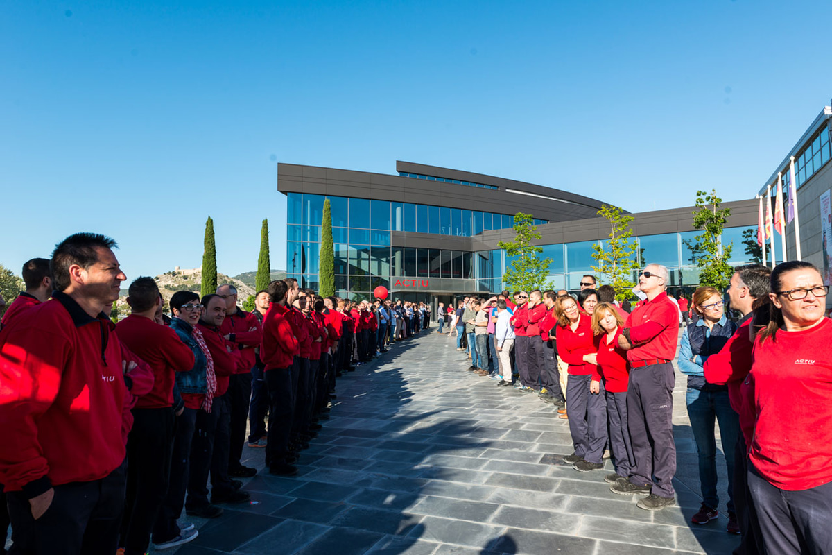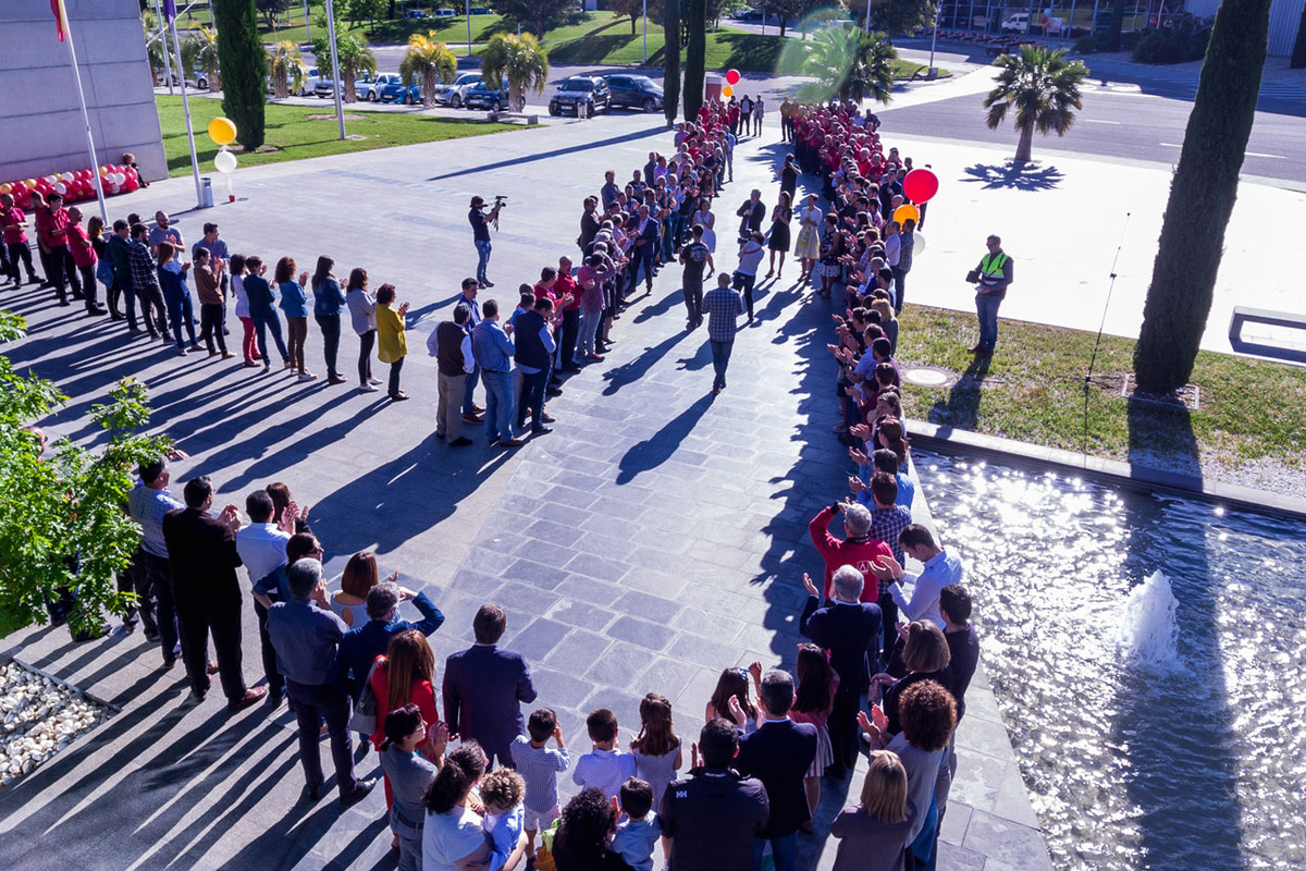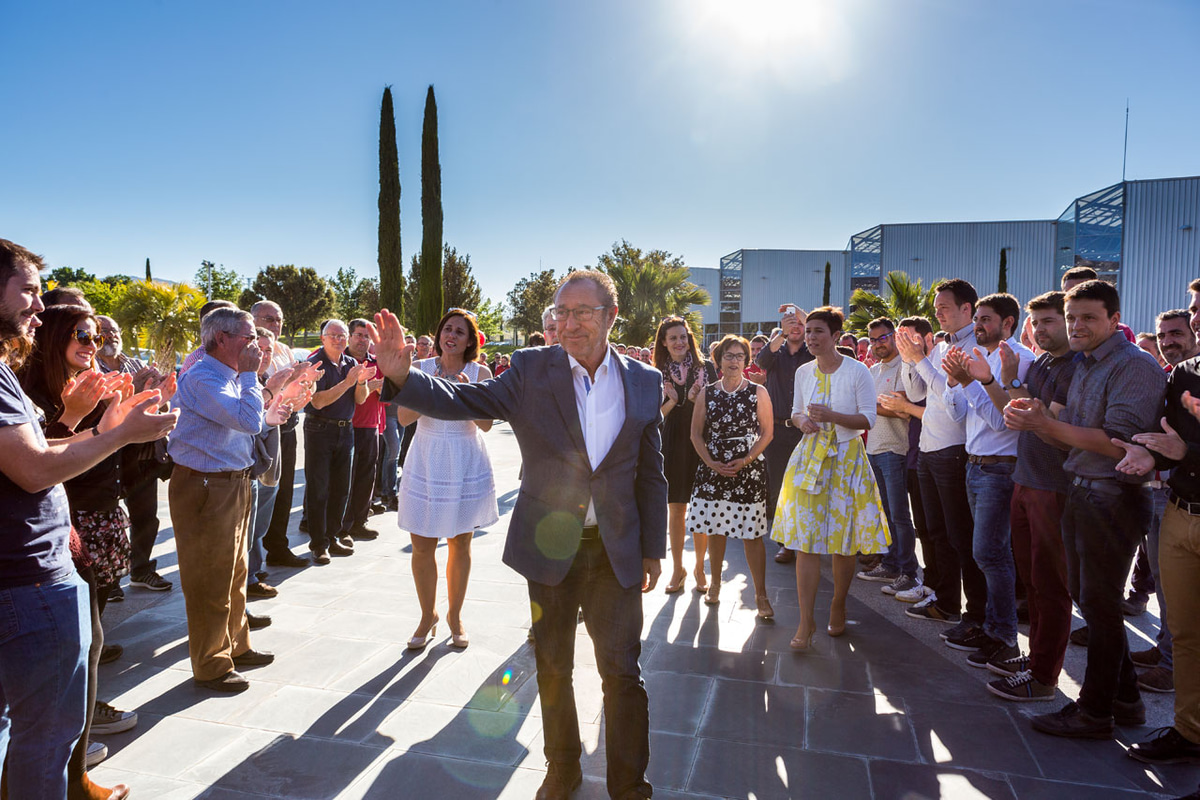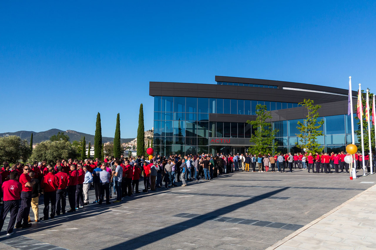 Les 285 travailleurs d’Actiu, rejoints par des collaborateurs et d’anciens employés, avaient rendez-vous au Parc Technologique lundi en début de matinée (le gala de remise des prix s’étant tenu jeudi soir en Croatie), pour accueillir Vicente Berbegal. Le fondateur du Groupe Actiu s’était rendu à son entreprise en pensant qu’il devait assister à une réunion. Quel ne fut pas son étonnement quand il s’est retrouvé au cœur d’un hommage surprise préparé par les employés et sa famille.