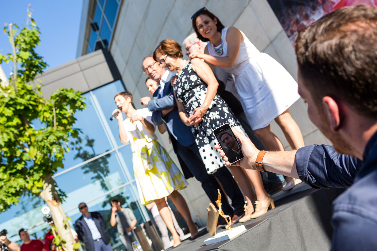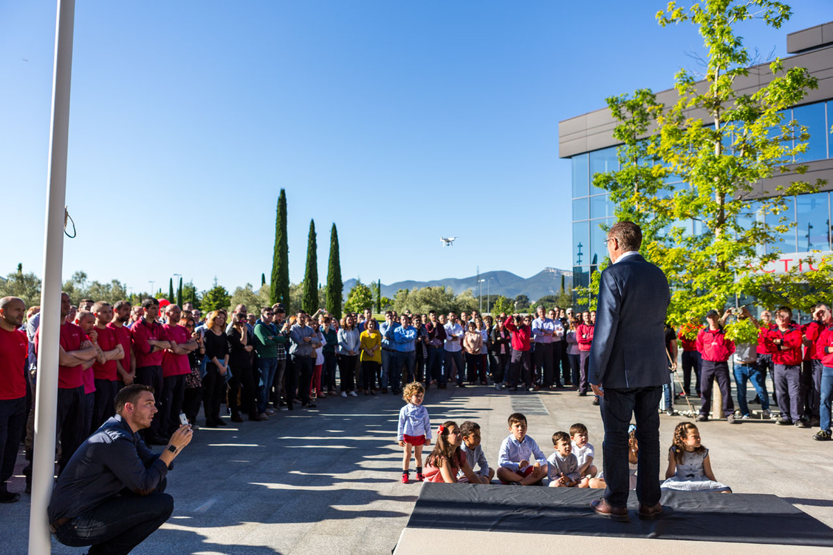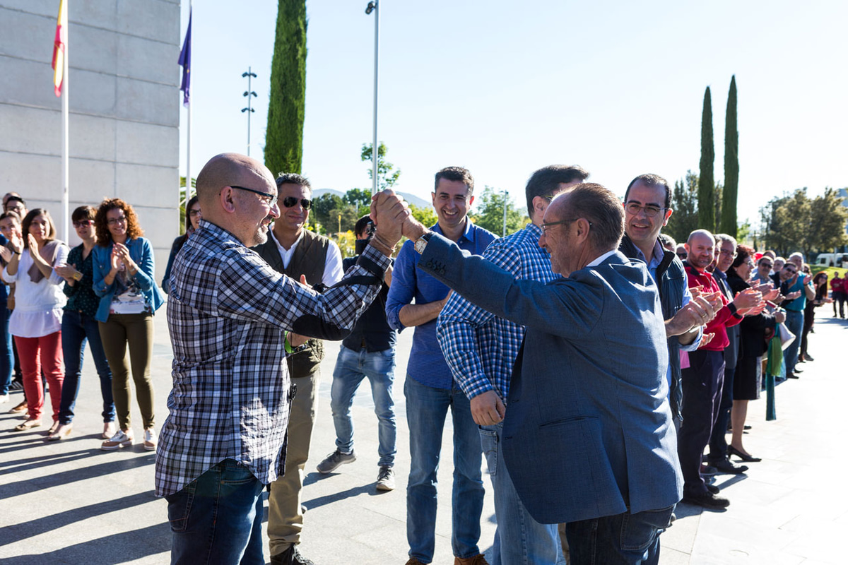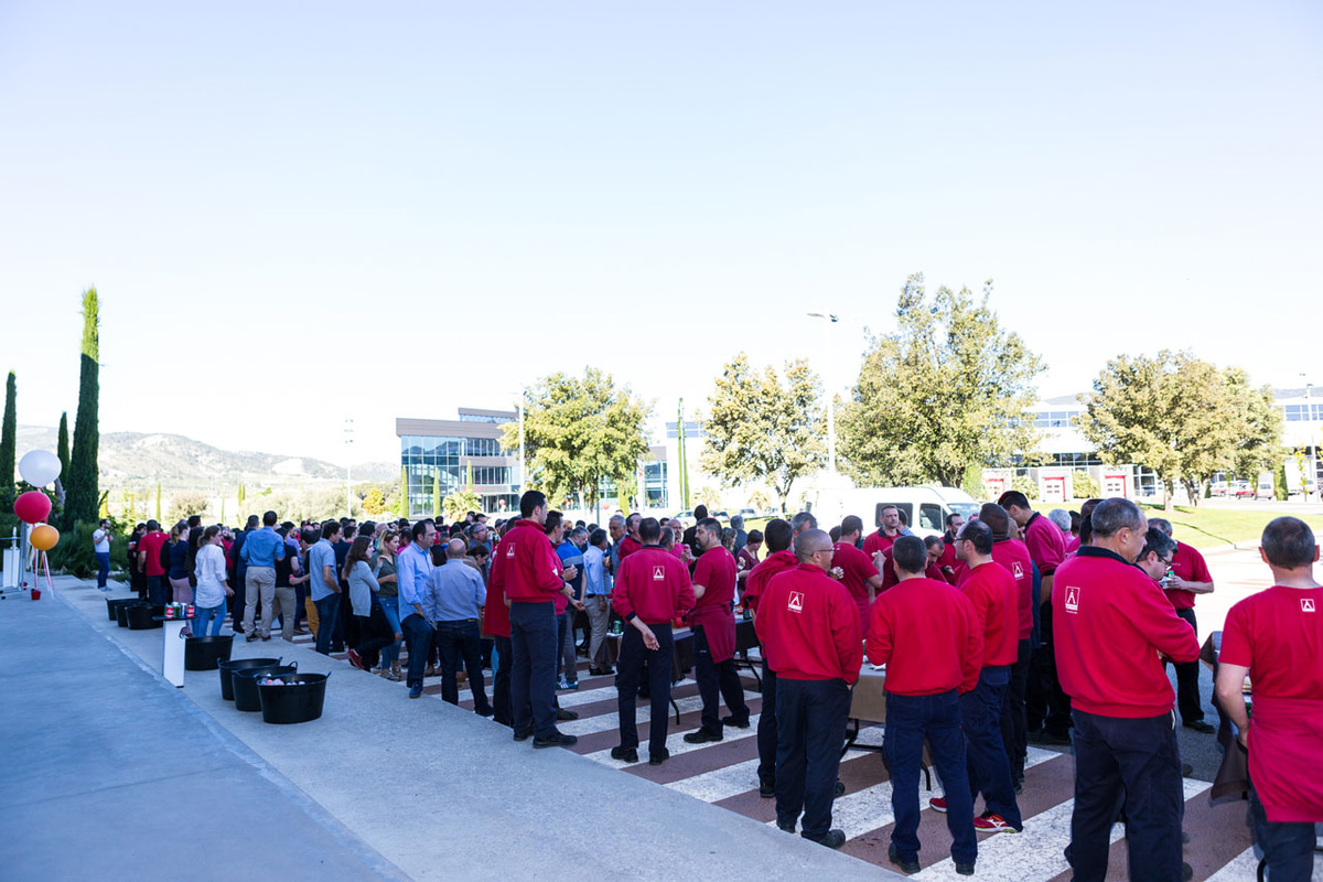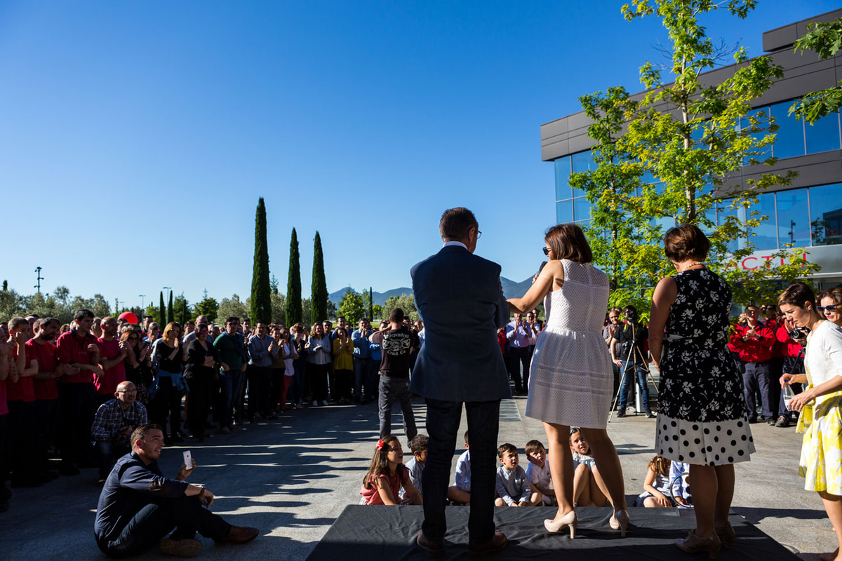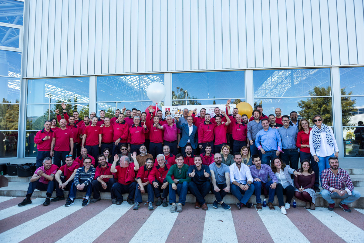 Les 285 travailleurs d’Actiu, rejoints par des collaborateurs et d’anciens employés, avaient rendez-vous au Parc Technologique lundi en début de matinée (le gala de remise des prix s’étant tenu jeudi soir en Croatie), pour accueillir Vicente Berbegal. Le fondateur du Groupe Actiu s’était rendu à son entreprise en pensant qu’il devait assister à une réunion. Quel ne fut pas son étonnement quand il s’est retrouvé au cœur d’un hommage surprise préparé par les employés et sa famille.