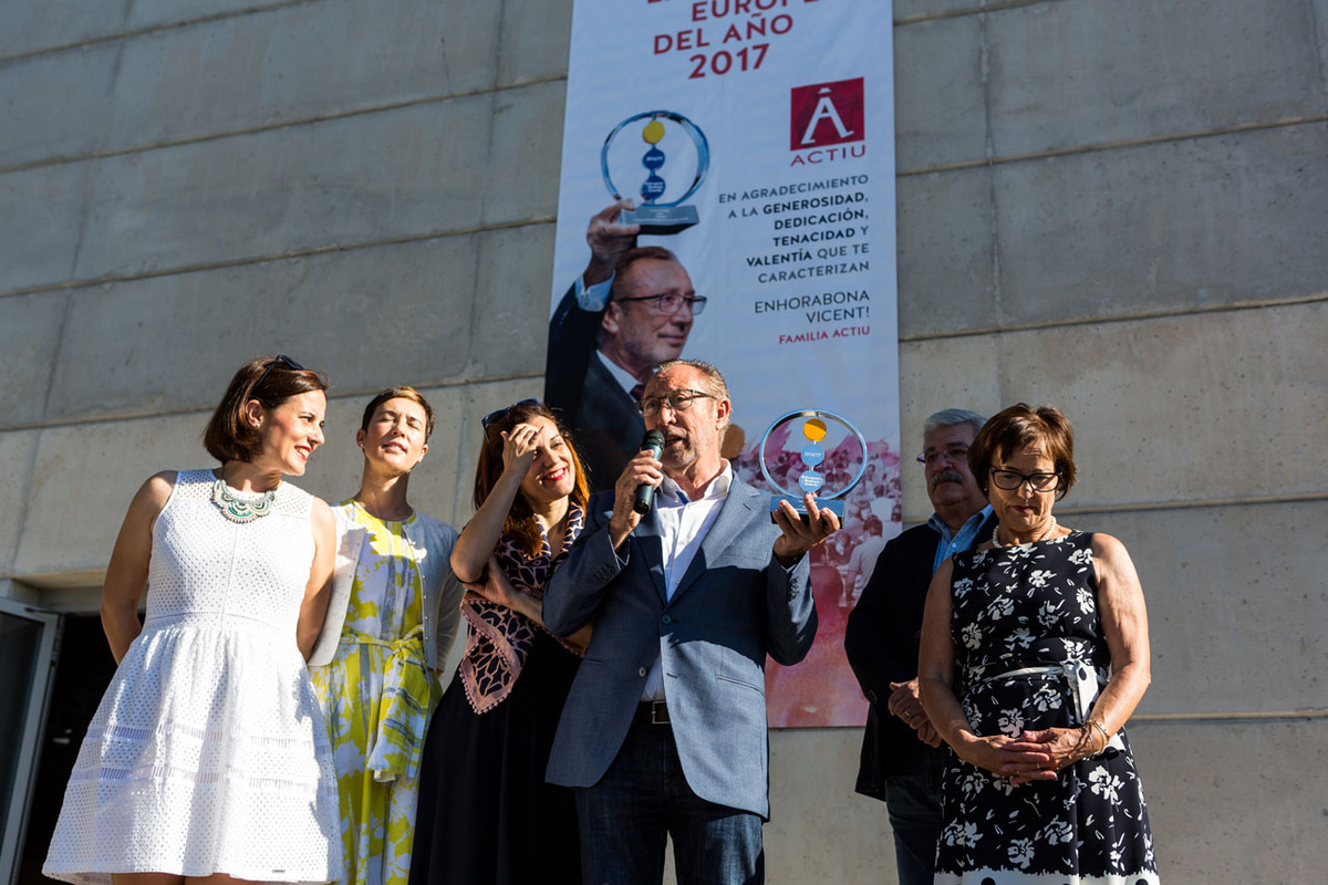 Vicent Berbegal, visiblement ému et en compagnie de toute sa famille, a indiqué une fois de plus que « ce prix constitue une reconnaissance des efforts et de la persévérance à un niveau à la fois collectif et individuel de toutes les personnes qui travaillent au quotidien pour faire d’Actiu une entreprise prospère, devenue une référence dans le secteur. Ce prix doit nous apporter fierté et motivation, car à travers lui, l’Europe reconnaît une entreprise telle que la nôtre, située dans une région comme la Foia de Castalla, bien différente de Londres ou de Paris. En même temps, il génère une grande responsabilité, car maintenant, il nous faut démontrer que nous méritons vraiment ce prix. C’est une grande opportunité qui va permettre de diriger la promotion et le positionnement de notre pays vers un niveau international ».