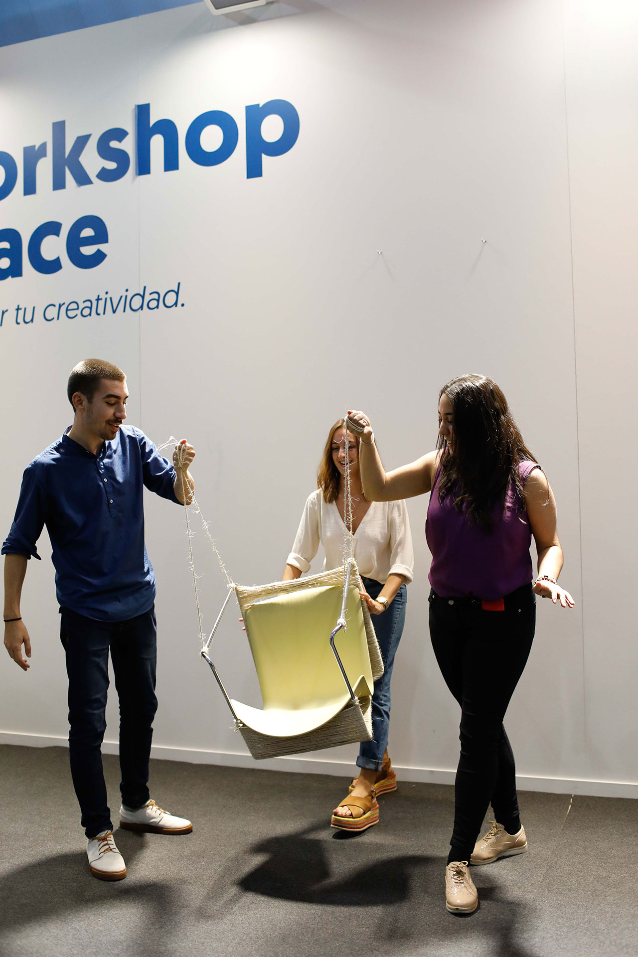 « Swing the whass » est la proposition gagnante présentée par les élèves de l’Université de Navarre. Après avoir démonté la chaise, ils ont fait le tour des composants afin de concevoir un nouveau produit qui, à l’aide d’une corde, se transforme en une balançoire confortable et fonctionnelle. Les pieds changent de sens et le dossier prend la place de l’assise pour créer une utilisation totalement nouvelle.