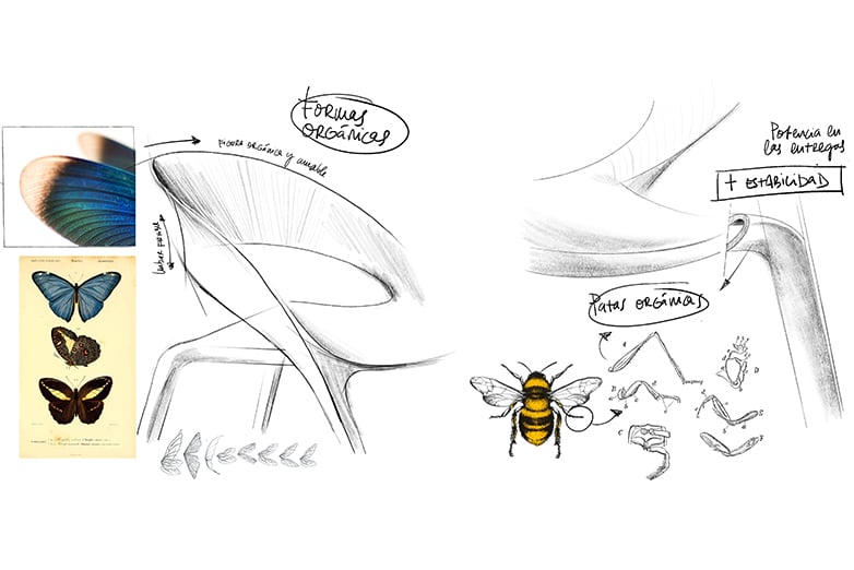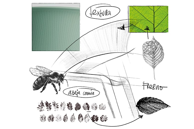 Bee est inspirée de la nature et principalement des abeilles, comme son nom l'indique. Ces insectes sont capables de travailler à la construction des espaces qui constitueront leur habitat. De la même manière, avec son esthétique volumineuse qui marque les esprits, Bee remplit l'espace.