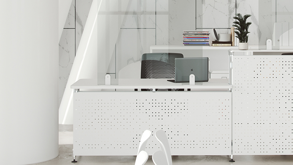 Le bureau d'accueil est le premier élément visible de l'intérieur. Pour faire bonne impression, il est donc essentiel de disposer d'un mobilier qui s'intègre à l'environnement et qui soit cohérent avec le caractère de l'entreprise ou de l'institution.
