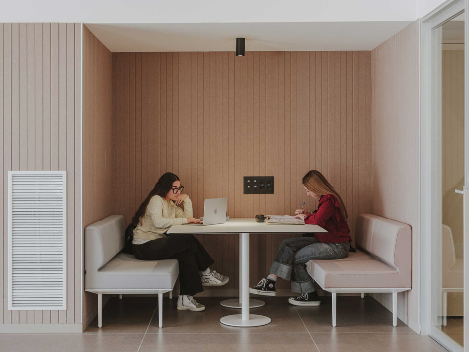 Les cafétérias et les cantines évoluent vers des espaces flexibles, polyvalents et multifonctionnels. Elles ne se limitent plus à être des lieux où les étudiants mangent, mais sont désormais conçues comme des espaces de rencontre et de collaboration, destinés à favoriser les interactions sociales, l'apprentissage informel et le bien-être.