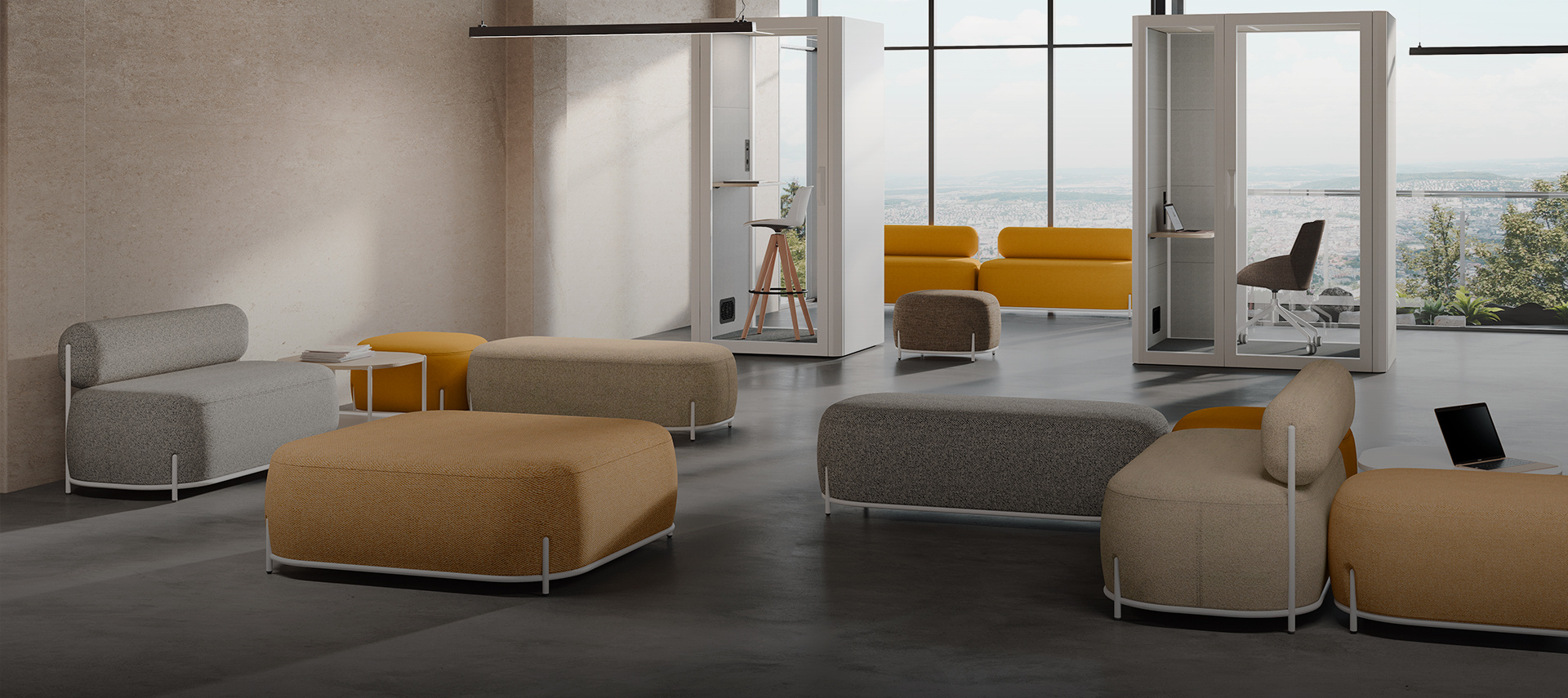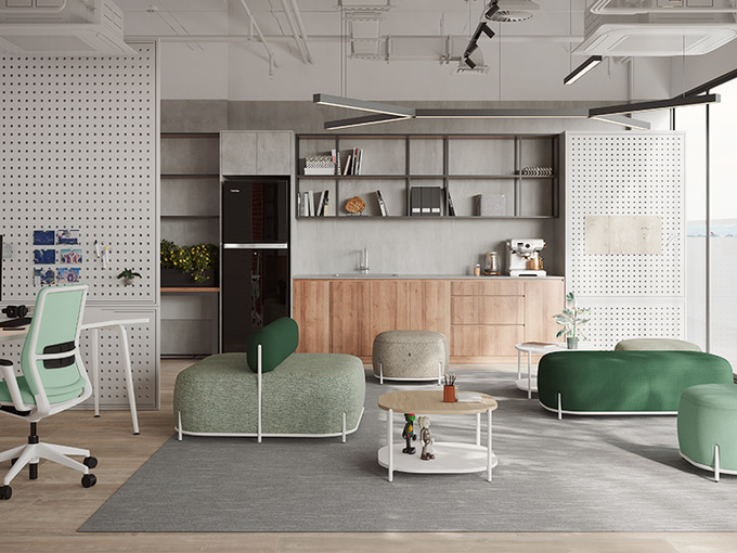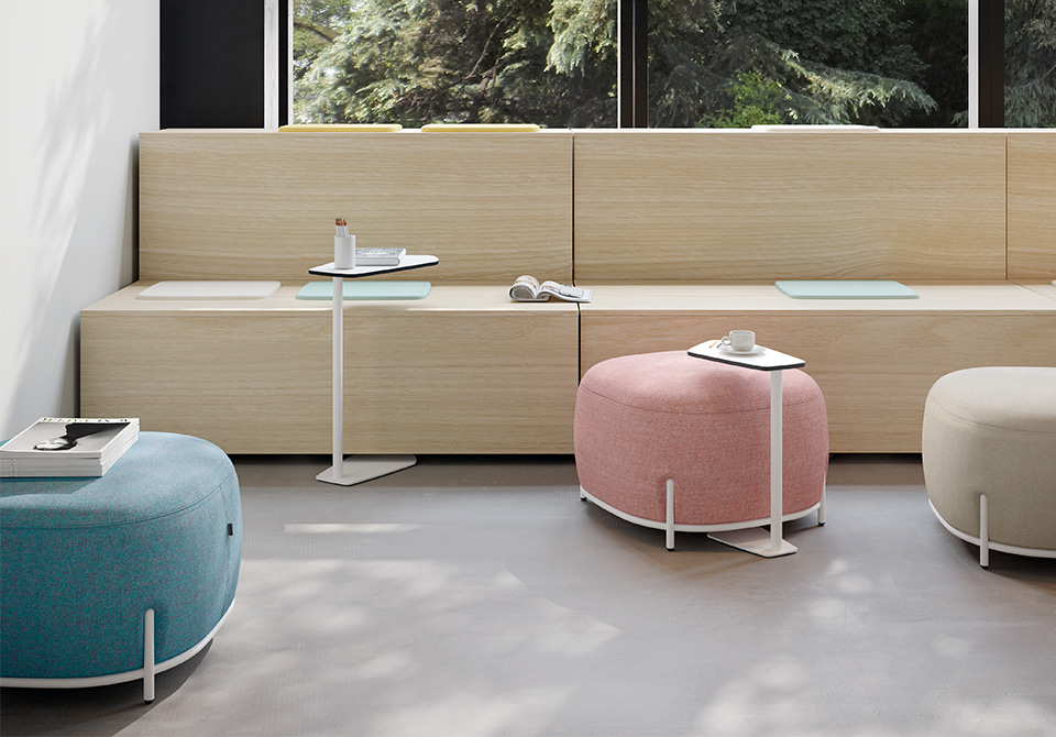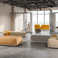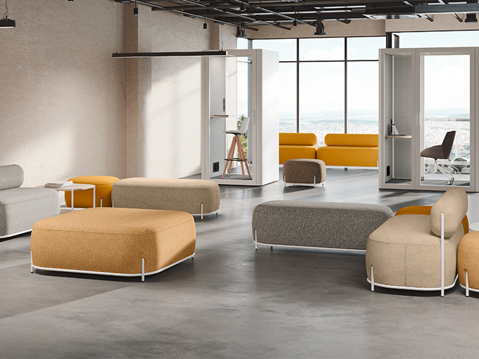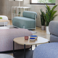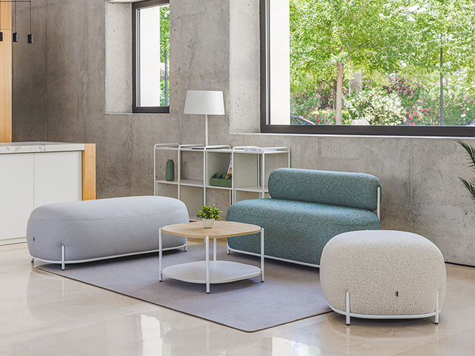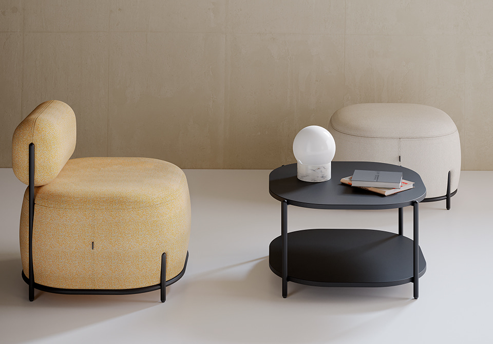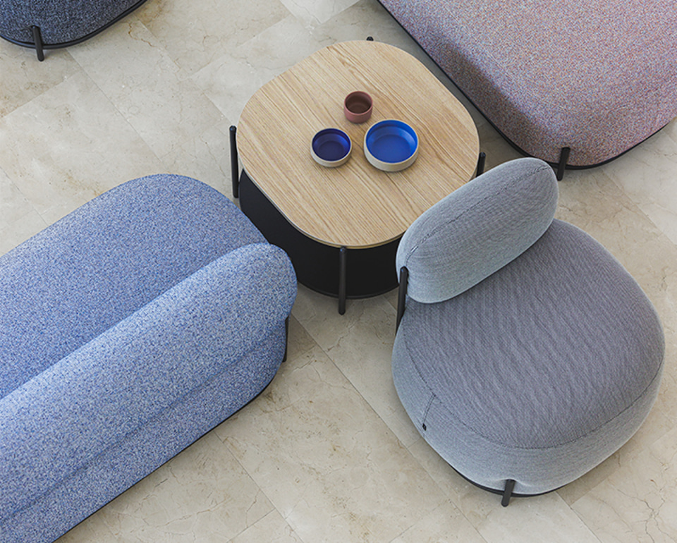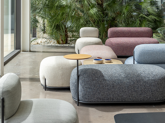 Les fauteuils Globb permettent une infinité de combinaisons grâce à leurs accessoires tels que les dossiers, les différentes finitions de leurs pieds ou la variété des revêtements et des couleurs.