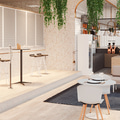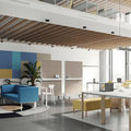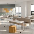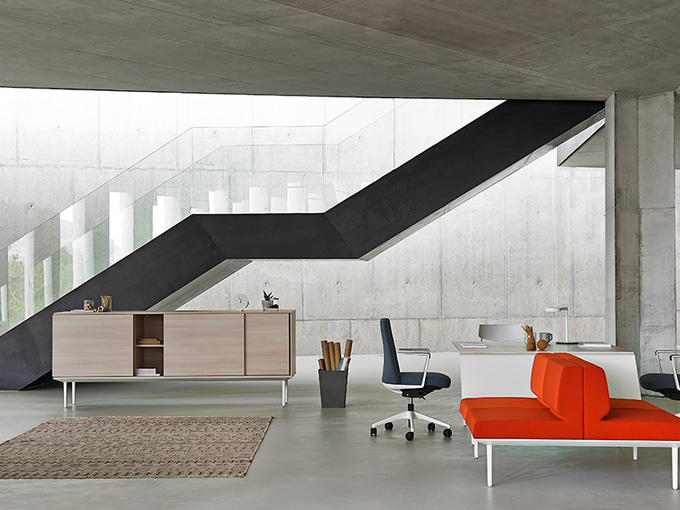 Le cadre périmétrique aux formes droites de Longo, ses découpes angulaires, la particularité de ses pieds ou la section des buffets, évitant l'utilisation de poignées ou de dimensions de grande hauteur, font de ce programme un allié du design pour équiper les espaces de socialisation comme de direction.
