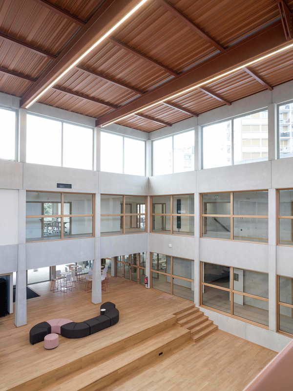 Le projet d'extension de l'Atelier Tardy reflète la philosophie de l'Institution Notre-Dame Saint-Jean, une approche pédagogique moderne, qui intègre des salles de classe innovantes et des outils numériques pour un apprentissage actif, et qui est axée sur le bien-être et l'innovation de ses étudiants et de ses enseignants. L'équipe dirigée par Olivier Tardy est intervenue dans l'espace pour répondre à un nouveau modèle d'apprentissage où le changement et la flexibilité sont essentiels.