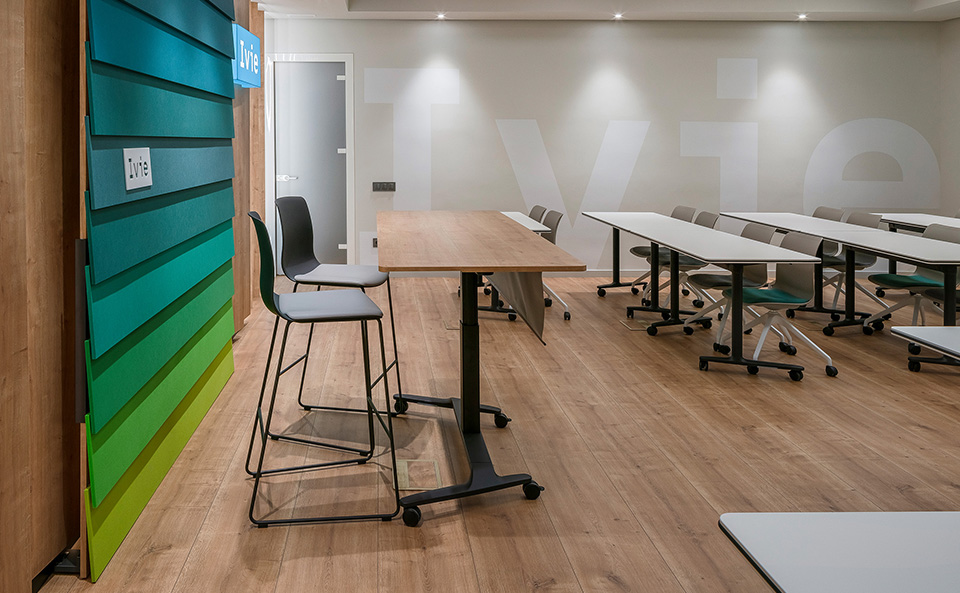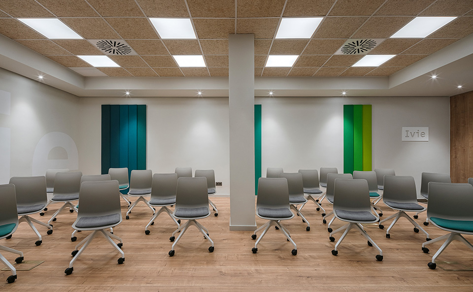 Après analyse de l'espace, l'objectif est de pouvoir utiliser le même espace de différentes manières, avec des ressources permettant de cacher les installations audiovisuelles lorsqu'elles ne sont pas utilisées et la zone de contrôle des équipements pour le personnel informatique.