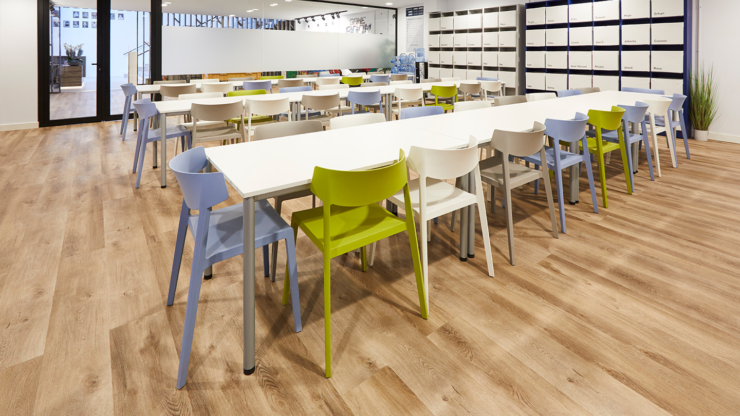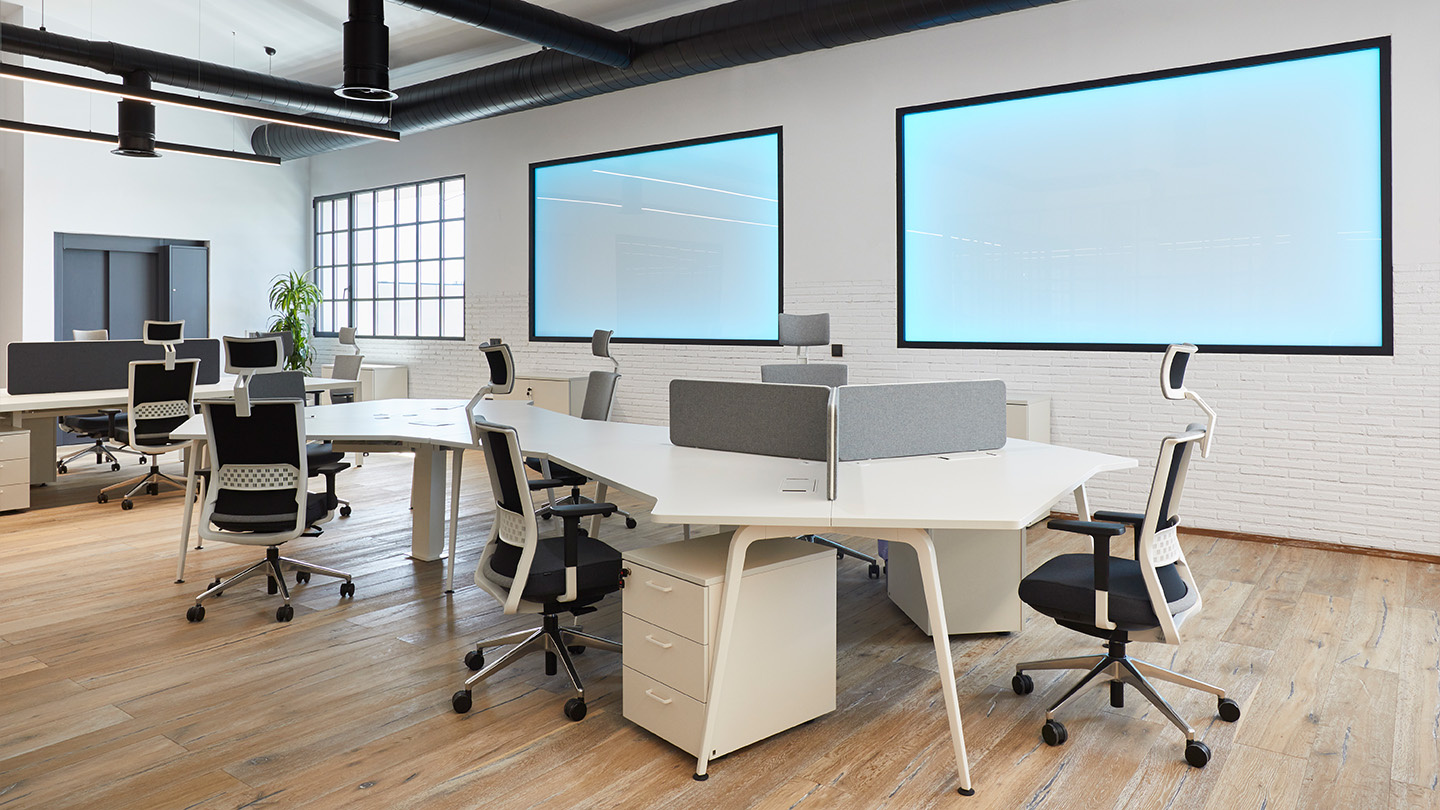 Actiu a participé, avec son partenaire LAMBDA3, à l'aménagement de l'espace, avec des programmes tels que la chaise Stay et la table Prisma, à la géométrie orthogonale et à l'esthétique minimaliste qui contraste avec les tables Twist Gen. Un système organique, où un système unique d'unions permet de relier les tables entre elles et de construire des bureaux visuellement plus fluides et dynamiques. D'autres programmes, comme la table de vidéoconférence Twist et les tabourets Efit, apportent confort et dynamisme aux petites salles de réunion.