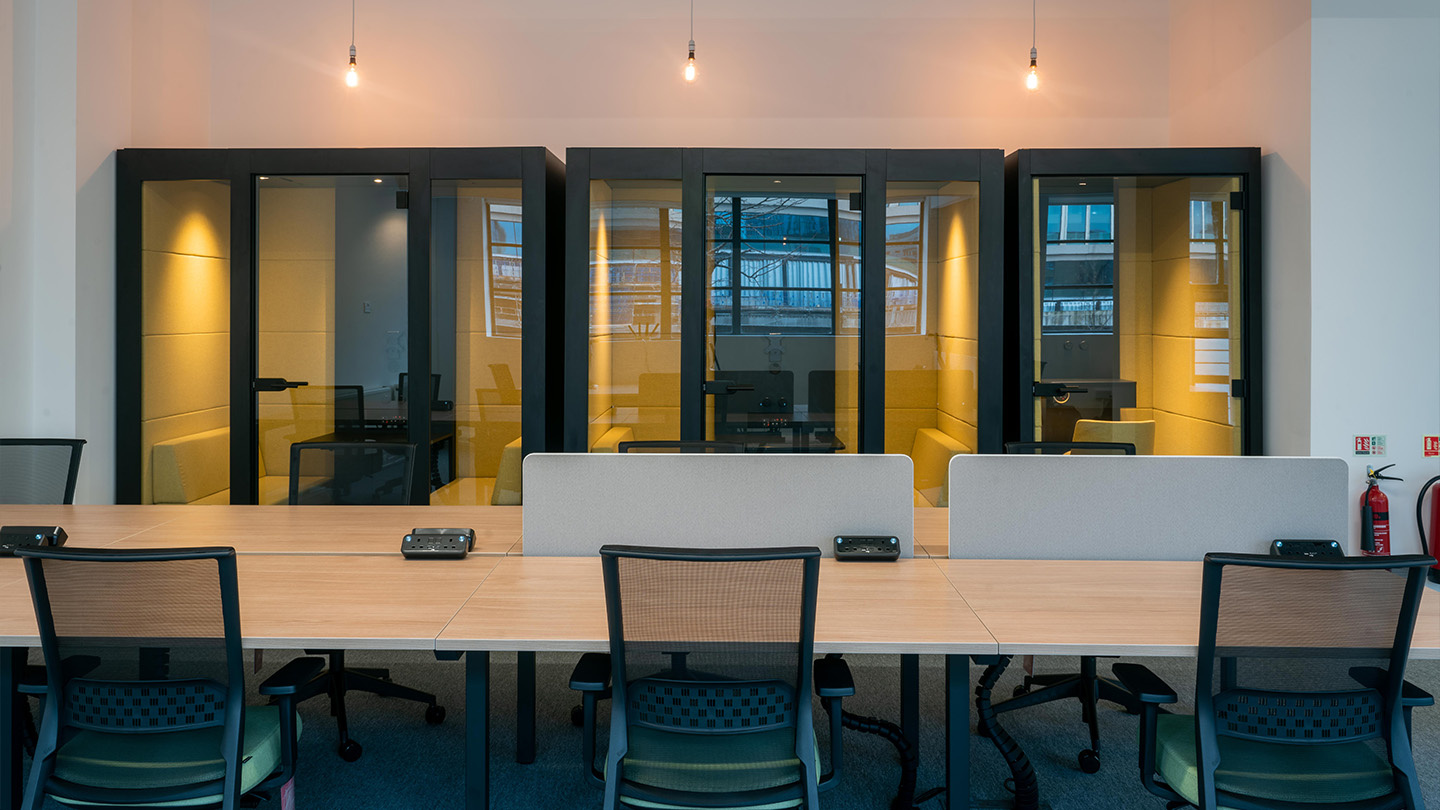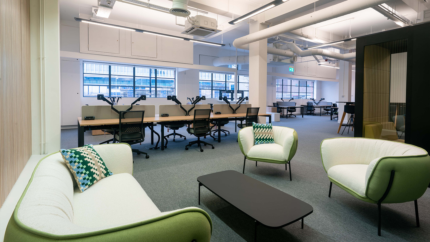 Pour ses bureaux de Kings Cross, AM Fresh souhaitait un environnement agile, combinant des postes de travail fixes et des zones flexibles, ainsi qu'un espace plus privé.