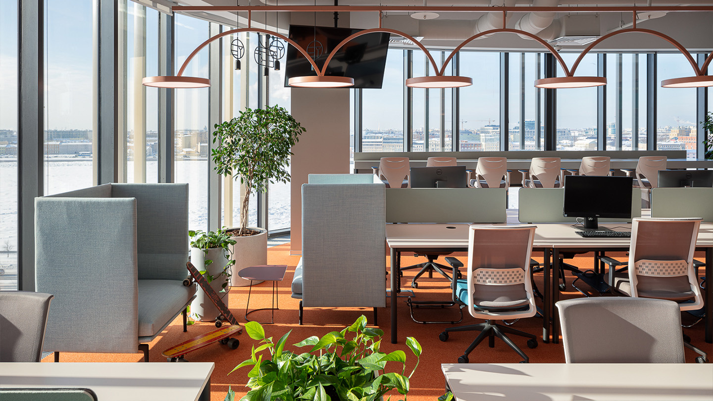 Actiu a participé, avec son partenaire en Russie, LLC Statio Project, à l'aménagement de ce nouvel espace. Les tables Dynamic et Talent, les chaises Stay et les séparateurs 360º ont été les modèles choisis pour renforcer le caractère fonctionnel, technologique et design du projet, et ainsi augmenter le bien-être physique et émotionnel des travailleurs et des clients.