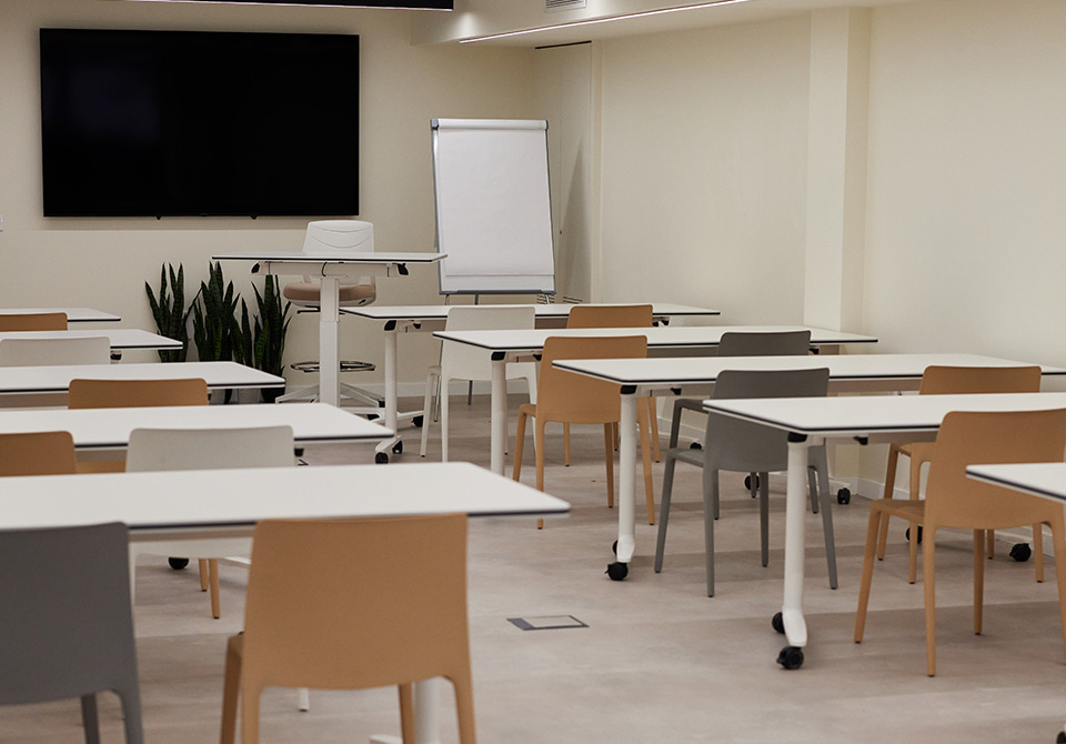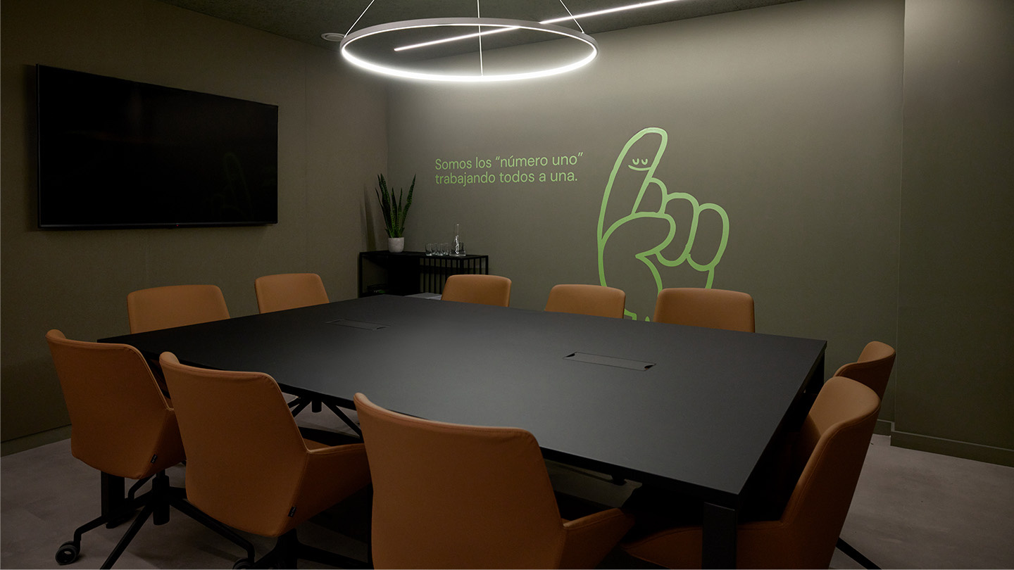 Depuis l'entrée, où les travailleurs sont accueillis par un grand comptoir de 3,60 m de long et un couloir qui fait office de réception, tous les espaces, y compris les bureaux, sont conçus pour être très spacieux. Pour rompre la monotonie, des coins plus privés ont été créés entre eux, avec différentes atmosphères qui invitent au bavardage et à la conversation. Certains d'entre eux sont équipés de programmes tels que Noom, qui a également meublé l'espace ouvert principal. La zone opérationnelle avec la chaise Stay operative et les tables Vital PRO, ou la salle de formation avec la chaise Fluit pour les collectivités et la table pliante et élévatrice Talent 300.