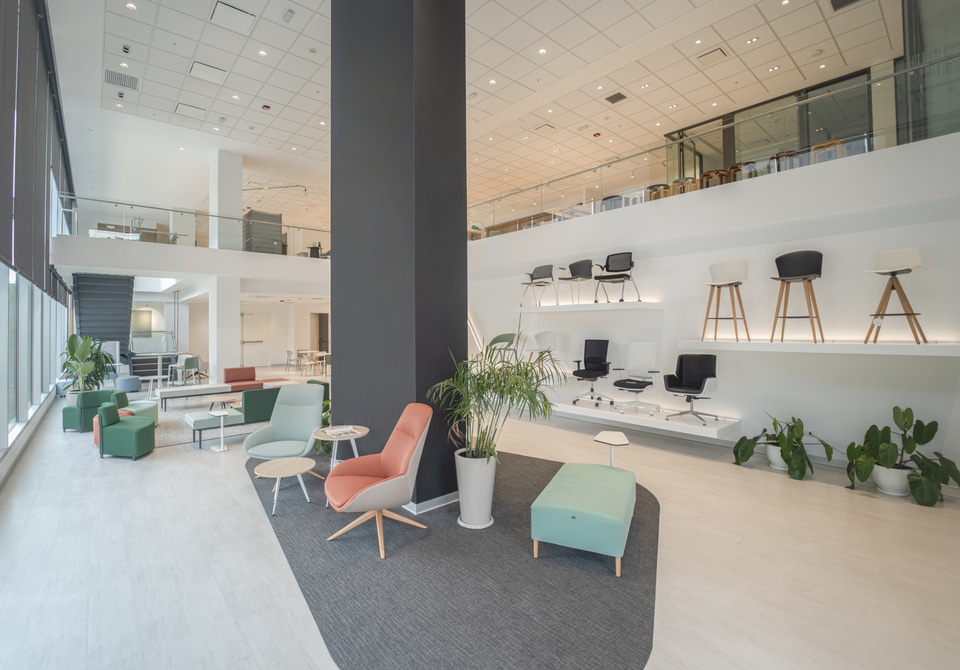 L’agence d’architecture de Viviane Fort Brescia a été responsable d’un projet pensé pour offrir une circulation intuitive dans l’espace, où les visiteurs peuvent profiter d’une approche thématique spécifique à chaque étage. Du mobilier haut de gamme du deuxième, ou du mobilier spécialisé pour le secteur de la santé du troisième, à la sillerie ergonomique, au mobilier orienté vers le confort ou aux différents types de sols, revêtements muraux, stores et rideaux des quatrième et cinquième étages. Sans oublier un dernier niveau où explorer et expérimenter les possibilités infinies et toujours plus surprenantes de l’univers contract.