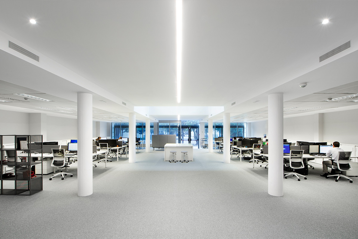 Il a fallu une rénovation importante pour "revoir" le bâtiment conçu par Ferrater", explique le studio, qui a retrouvé la perception des volumes architecturaux intérieurs, éliminé les éléments qui entravaient la perspective visuelle et gagné en efficacité dans la circulation intérieure : "La circulation des personnes dans le bureau est importante pour que tout soit en ordre et que tout le monde ait un chemin clair et tracé. Les visiteurs ne doivent pas entrer dans les zones réservées sans être accompagnés et la circulation interne doit être courte et fluide", ajoutent Denys et Von Arend.