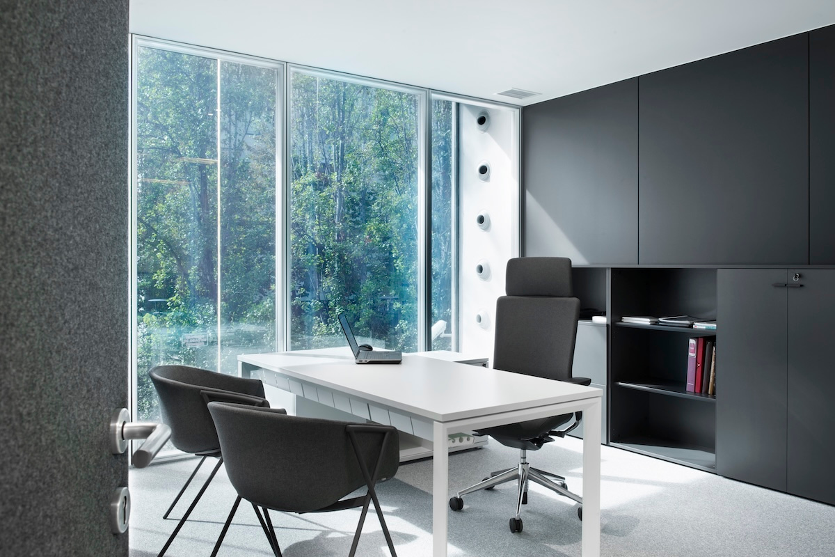 Bien que l'organisation de l'entreprise soit classique et hiérarchique, avec des bureaux fermés pour la direction générale et les autres postes - pour la plupart fixes - dans l'espace ouvert, l'accent a été mis sur des aménagements très confortables et un espace suffisant entre les bureaux. Avec des espaces ouverts, de l'espace, de la clarté et des connexions, le nouveau siège offre un environnement de travail sain adapté à différentes tâches, où chacun dispose d'un espace personnel pour travailler individuellement.