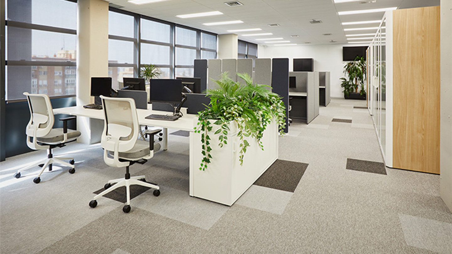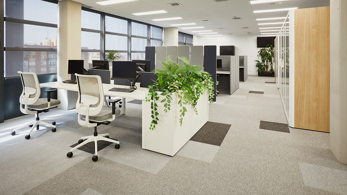 Conformément au caractère jeune et dynamique de l'entreprise, les postes de travail occupent un espace ouvert, distribué en plusieurs zones et garantissant le confort acoustique des travailleurs. La première, avec des bureaux Vital Plus dotés de cloisons insonorisantes et de chaises Trim; et la seconde avec un degré d'intimité plus élevé, grâce au système modulaire Link et aux panneaux rotatifs à 360° qui séparent les espaces et améliorent l'acoustique.
