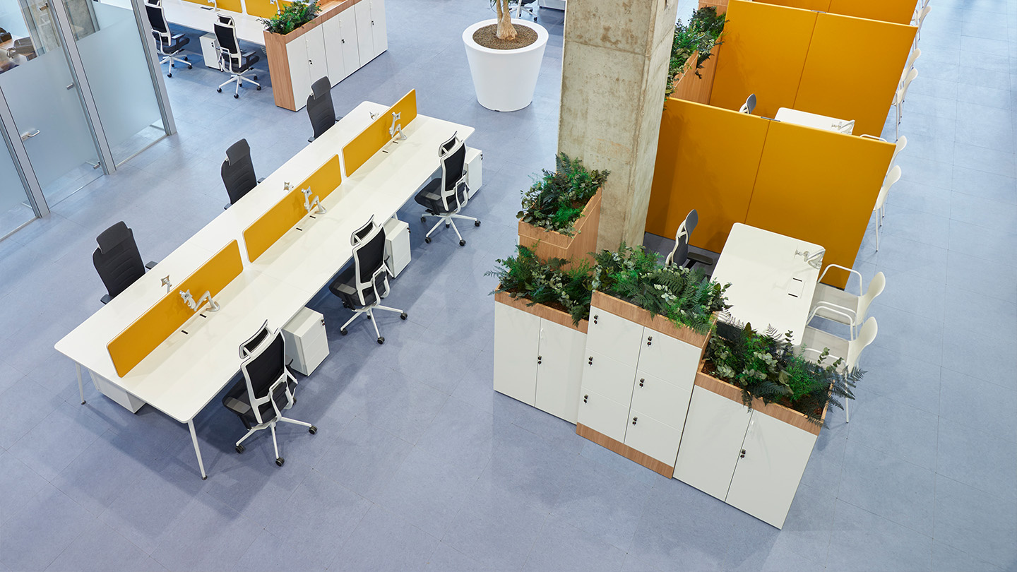 À l'étage du SEPE, afin d'obtenir une plus grande fluidité et transparence, la zone d'attente est divisée en plusieurs espaces enveloppés par des lattes de bois qui assurent l'intimité tout en permettant aux visiteurs d'avoir un aperçu de ce qui se passe dans la grande zone ouverte de travail et de service à la clientèle. Pour encourager ce dynamisme et cette communication, l'espace ouvert opérationnel est équipé de tables Twist, ainsi que de panneaux de séparation Link, d'armoires modulaires et de casiers surmontés de jardinières qui aident à séparer les espaces sans sacrifier la continuité spatiale.