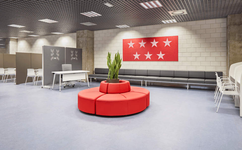 Le Service public d'emploi de l'État (SEPE) et la Direction générale du Service public d'emploi de la Communauté de Madrid souhaitaient que le nouveau siège de Santa Eugenia, à Vallecas (Madrid), soit un espace ergonomique et dynamique, où le design contribuerait à offrir un service public de meilleure qualité et plus efficace, et à améliorer l'environnement de travail.