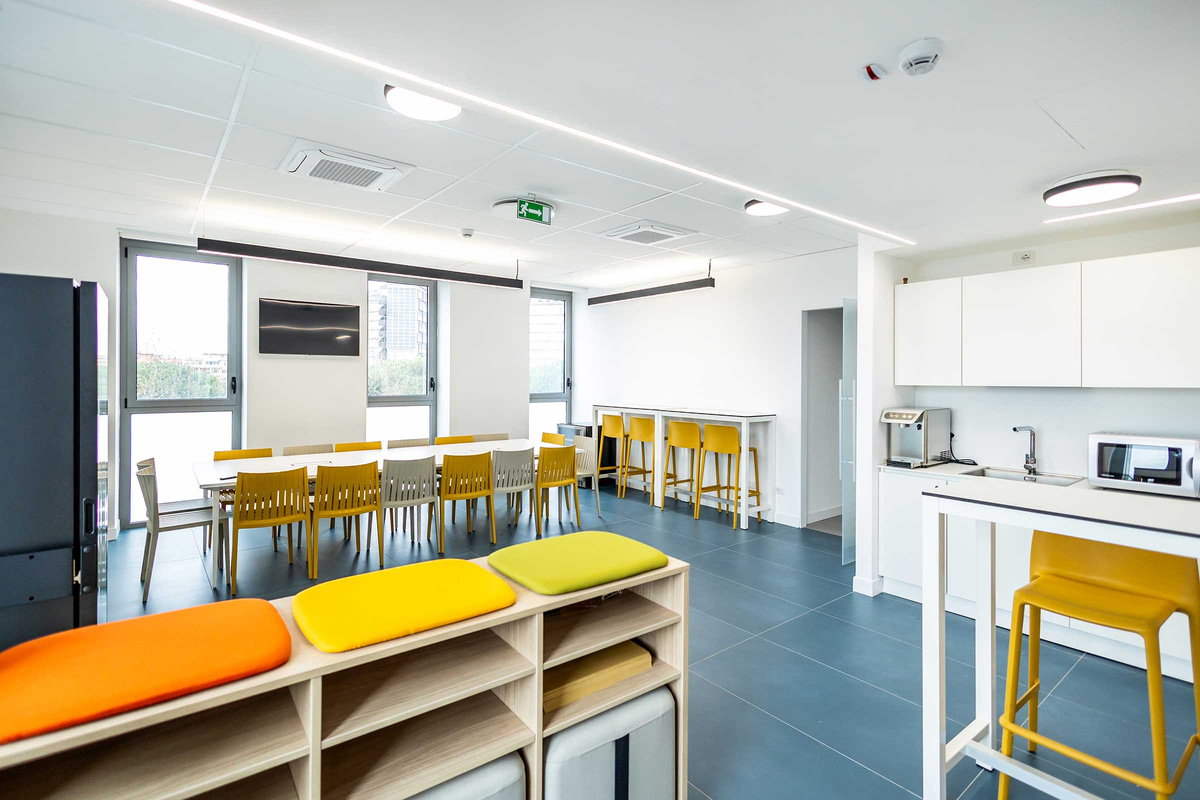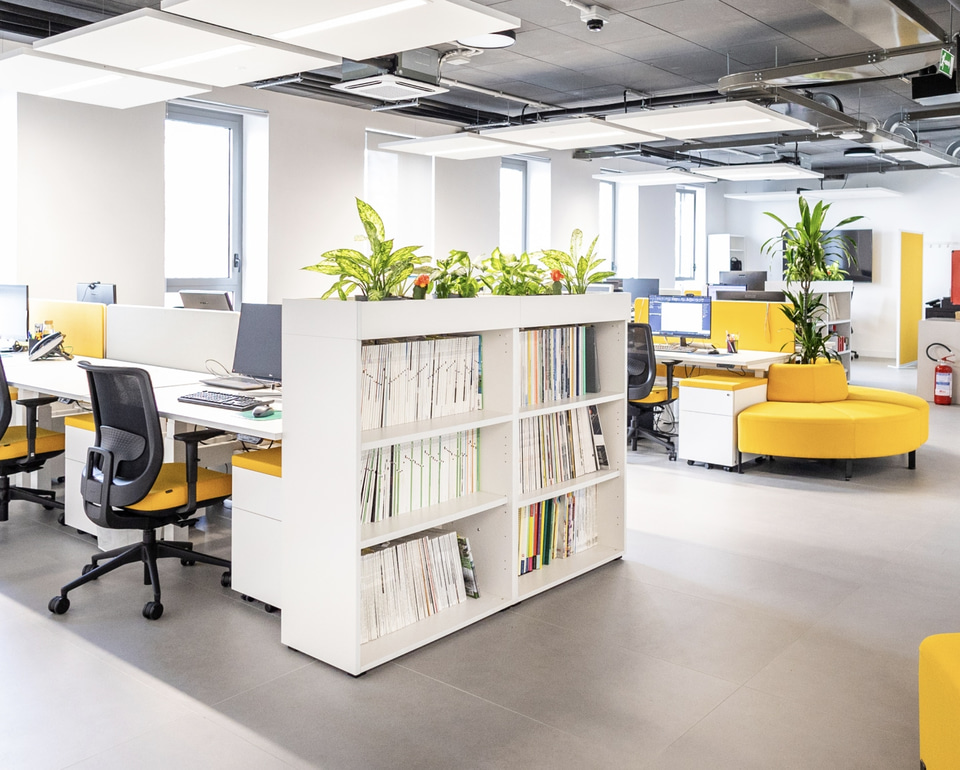 En février 2024, NEXT-A Amati NextArchitecture voit le jour, un espace conçu pour les architectes à partir des principes de flexibilité, productivité, durabilité et bien-être des collaborateurs. Le projet se concentre sur le confort acoustique et la durabilité, avec des îlots acoustiques phonoabsorbants et des revêtements de sol recyclables. La végétation dans l’espace améliore l’acoustique et le bien-être des travailleurs, réduisant le stress et augmentant la productivité. De plus, le système d’éclairage s’ajuste automatiquement afin de garantir le confort visuel, en respectant la réglementation en vigueur et les besoins des usagers.
