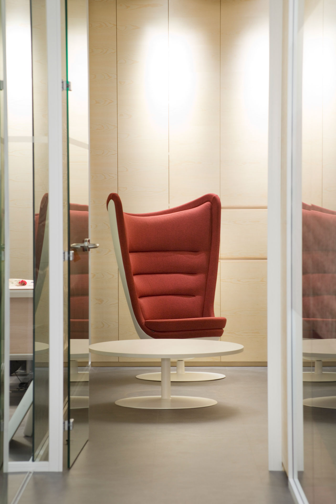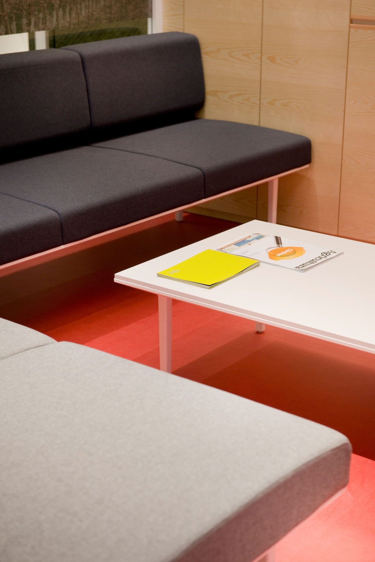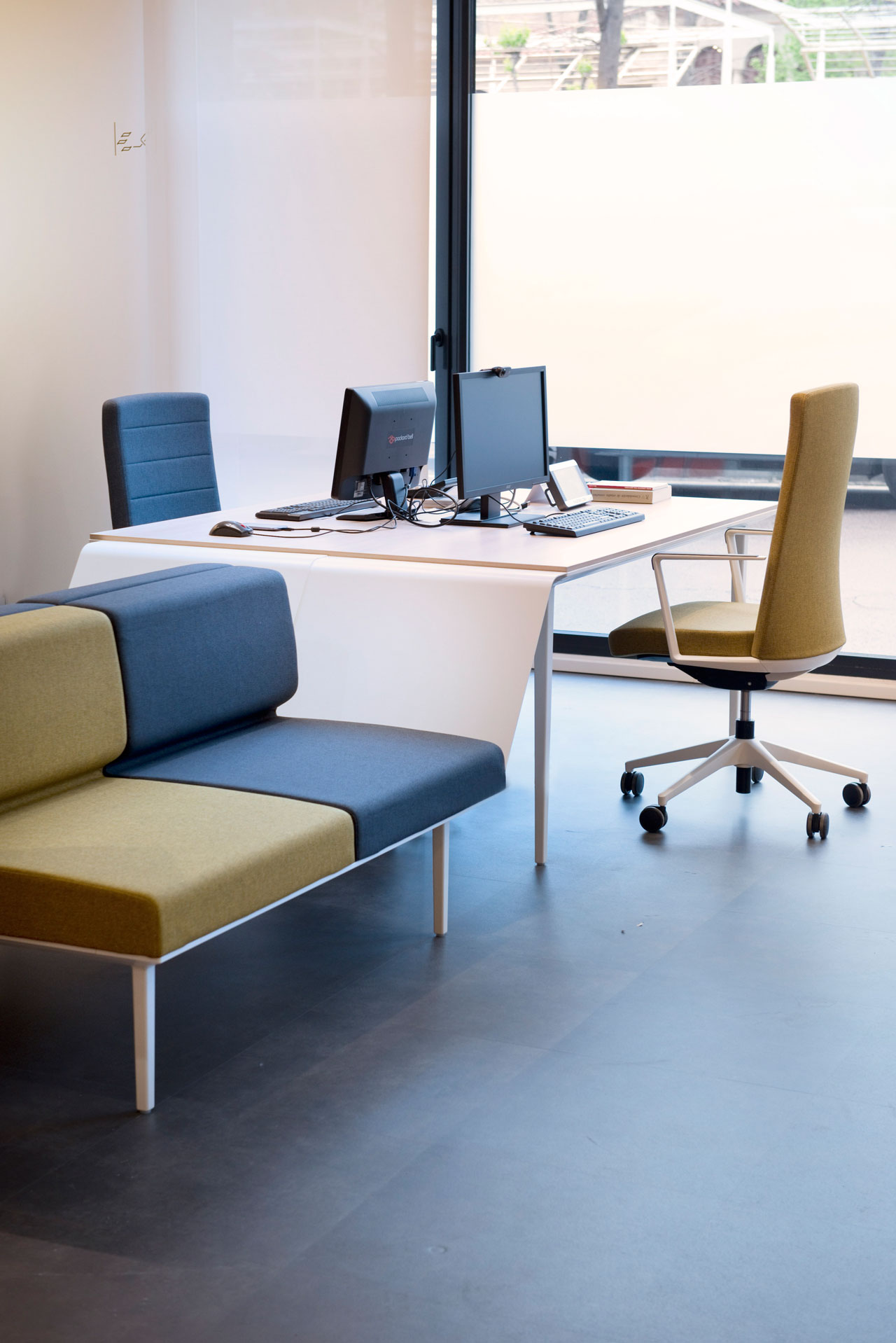 Dans les zones communes et les zones de passage, on a disposé des meubles qui allient le bien-être au travail à horaires libres, l’un des nouveaux concepts présents dans les bureaux, qui permettent la déconnexion, les conversations dans un climat détendu ou un usage privé. Ces espaces, équipés de fauteuils Badminton et du système Shey de Soft Seating, créent des environnements de travail où l’on se sent comme chez soi.