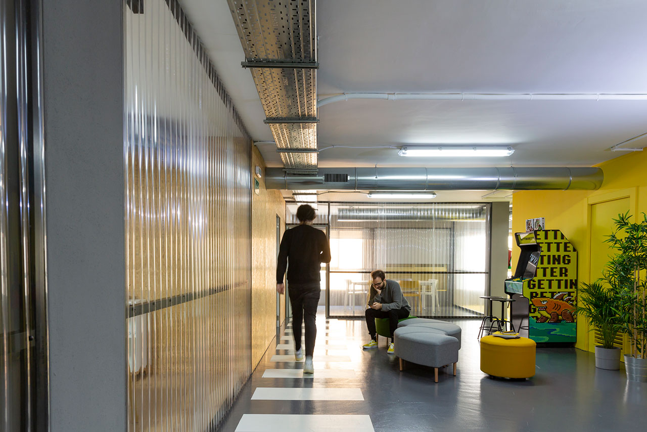 Le jaune ponctué de quelques touches de vert offert par la végétation délimite un espace vaste, ouvert et diaphane, dans lequel les équipes peuvent travailler ensemble ou en individuel. En effet, ce qui définit le travail de Gettingbetter, c’est le mélange composé de professionnels qui travaillent dans chaque projet. Planners, designers, créatifs et responsables des comptes travaillent côte à côte sur des campagnes précises sur l'étude de briefings et sur leur résolution à partir d’un travail en commun. Des idées qui peuvent surgir à tout instant et qui ne doivent pas trébucher sur des obstacles. Dans cette optique, il est essentiel de pouvoir compter sur un mobilier à la fois polyvalent, flexible et modulaire, qui permette de se déplacer et de rassembler les équipes de façon temporaire.