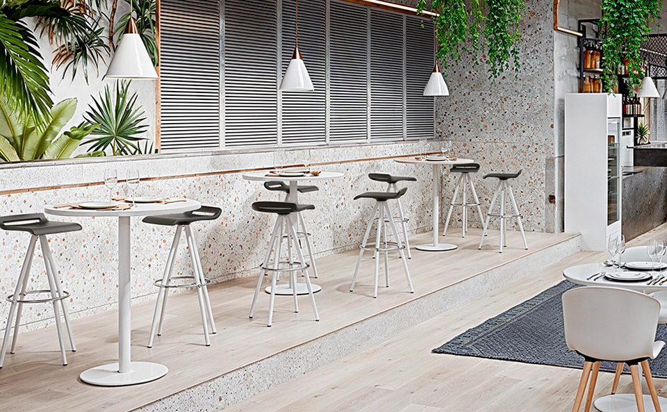La version tabouret de la gamme MIT, avec ses assises caractéristiques en PUR intégral, offre une ergonomie éprouvée pour rendre plus confortables les réunions dans les espaces de rencontre ou le travail sur table haute.