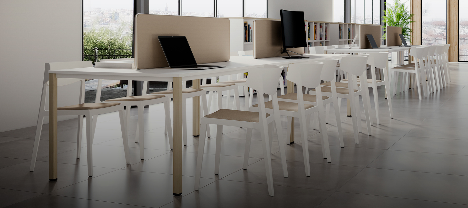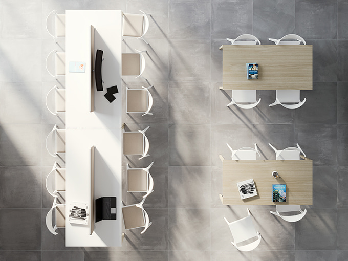 Colectiva est une gamme de tables conçues pour répondre aux exigences des espaces de travail actuels : une esthétique contemporaine, des formes simples aux lignes droites et épurées, un montage facile et une présence élégante.