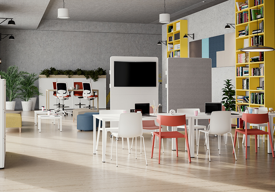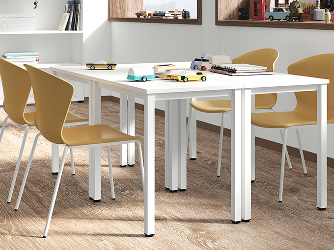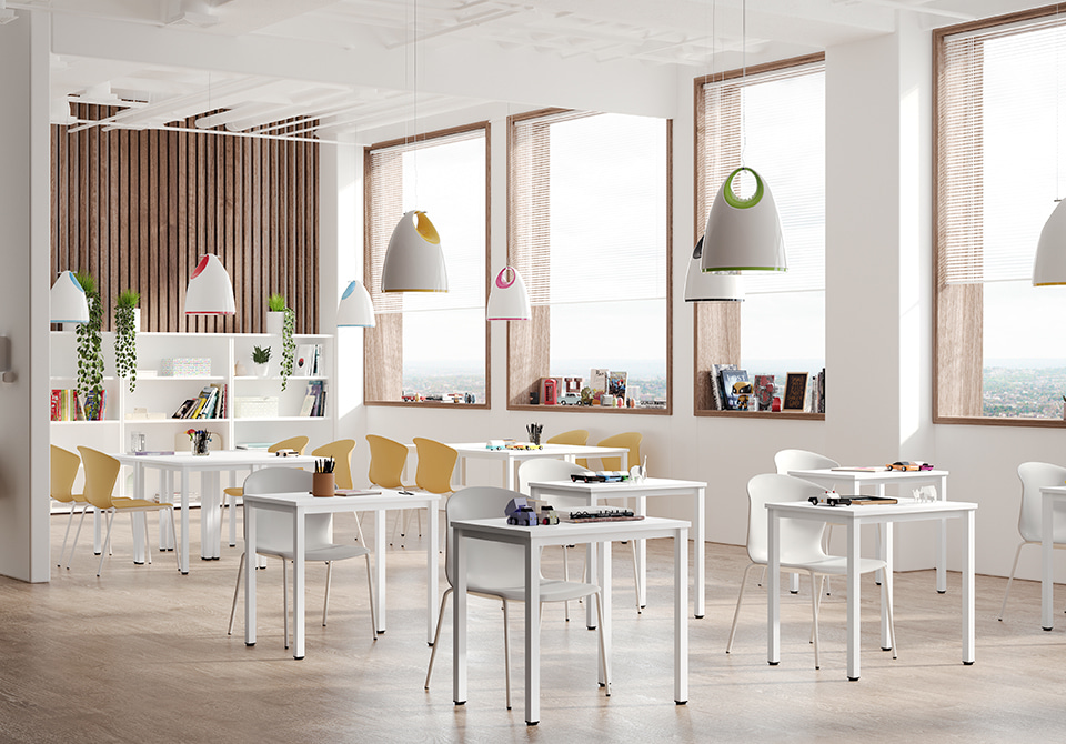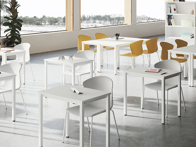 Les différentes configurations de la gamme Colectiva permettent d'adapter vos tables aux besoins de chaque espace éducatif ; un concept flexible capable de créer des environnements propices à l'apprentissage dans les salles polyvalentes, les bibliothèques, les universités, les collèges et les écoles.