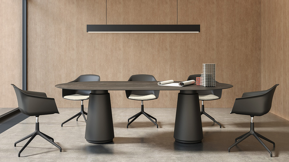 Tables de réunion pour les espaces de travail et les espaces collaboratifs qui encouragent la communication et l'échange d'idées.